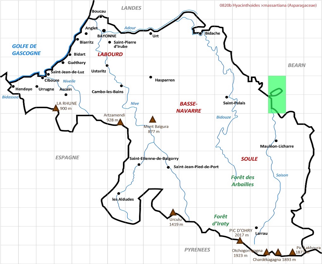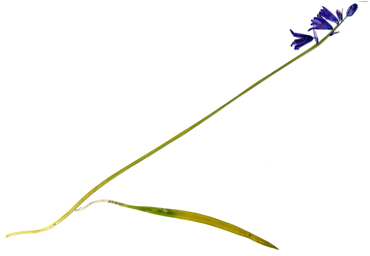 G à bulbe – 2-5 dm – Feuilles basales en gouttière – Inflorescence incurvée ± unilatérale de fleurs bleues ± odorantes, en cloche assez étroite, à tépales ± récurvés, anthères azurées