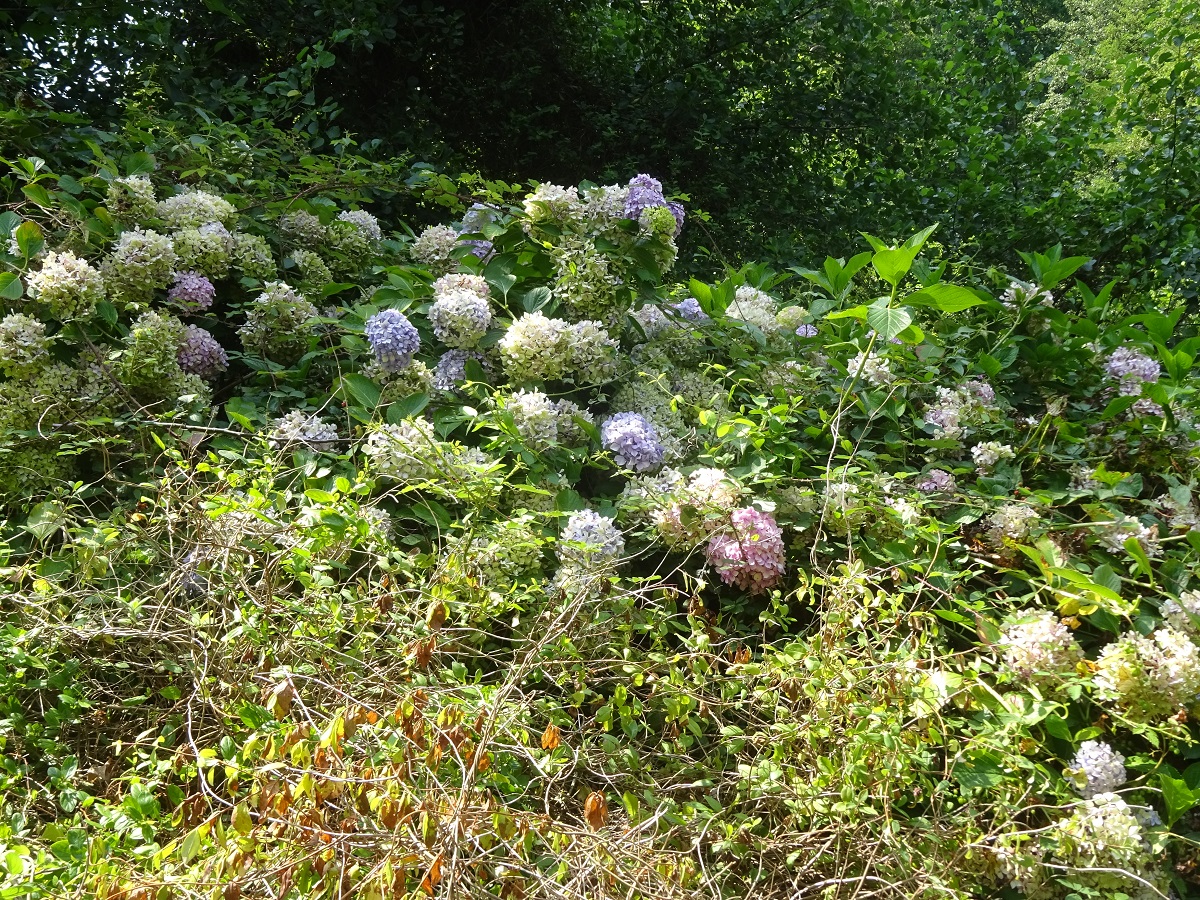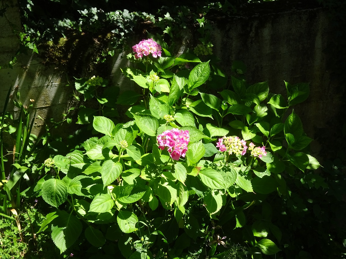 NPh – 1-2 m – Grandes feuilles opposées ovales acuminées, dentées, pétiolées – Large dôme de grandes fleurs de type 4 et de minuscules fleurs de type 5, bleues ou roses