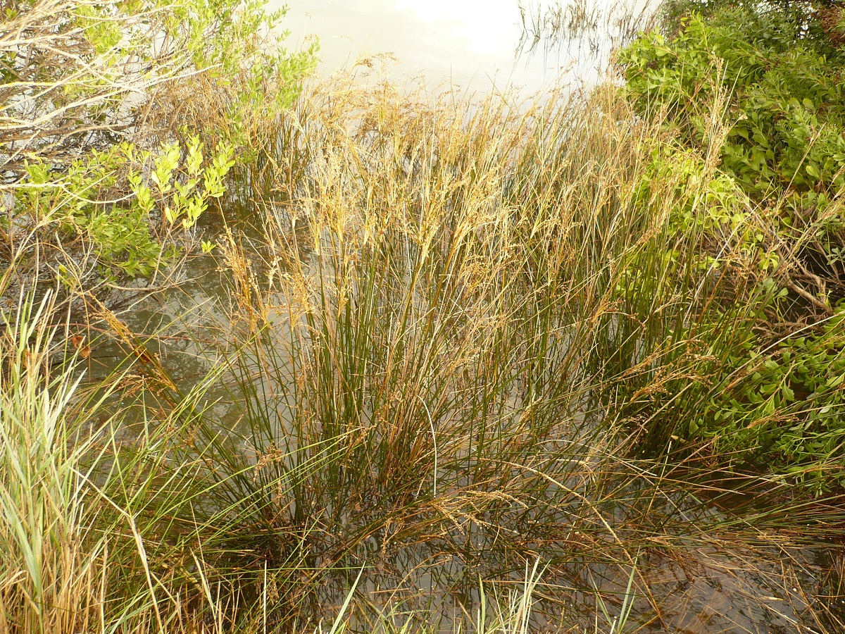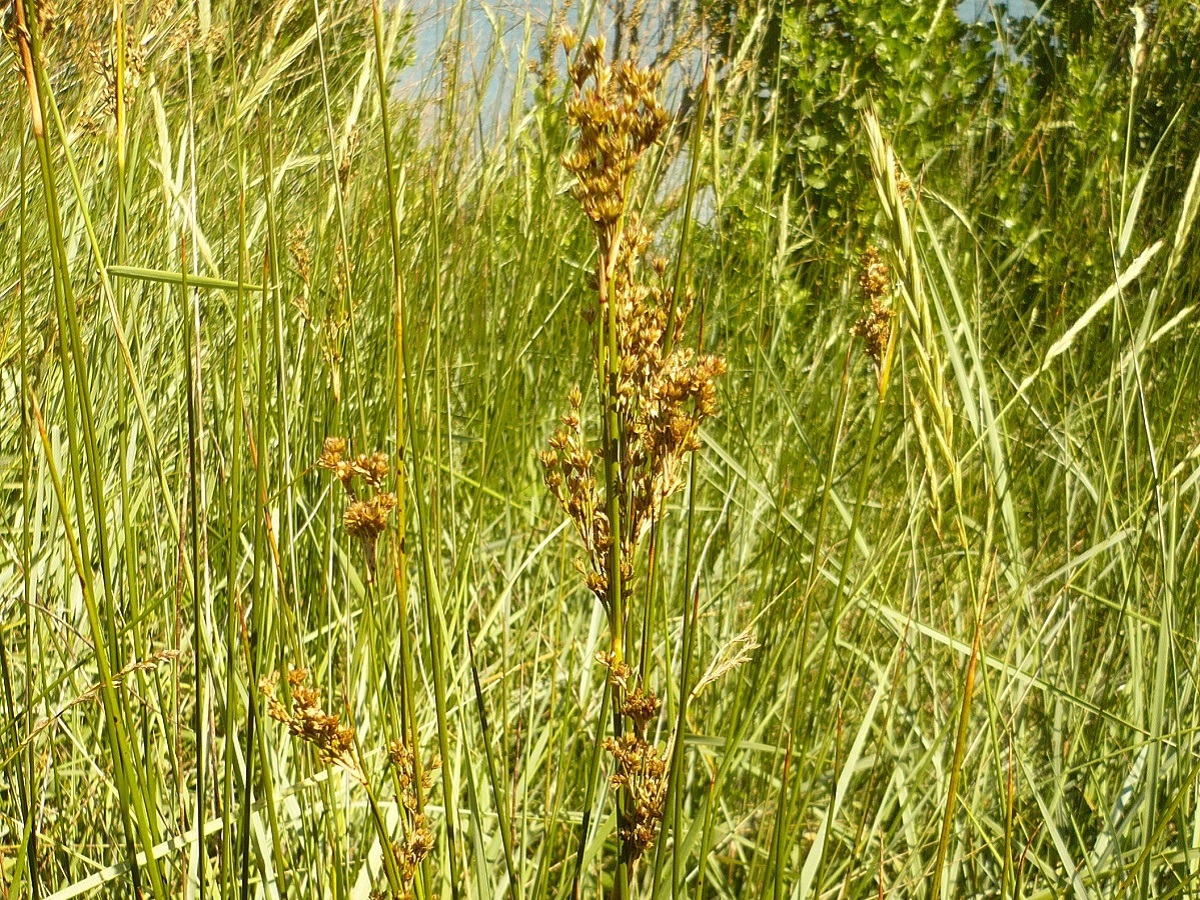 G à rhizome – 5-10 dm – Tige cylindrique ± glauque, dressée – Panicule vert-pâle, lâche, souple, à longue bractée piquante – Capsule trigone-ovoïde ≃ aux tépales aigus