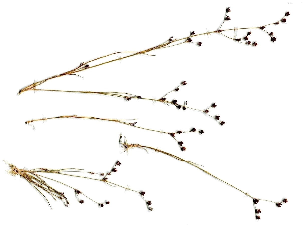 Th – 0,5-3 dm – Tiges grêles, feuilles capillaires courtes, gaines > auriculées – Inflorescence lâche de fleurs toutes solitaires – Capsule globuleuse ≃ aux tépales L de 2-2,5 mm