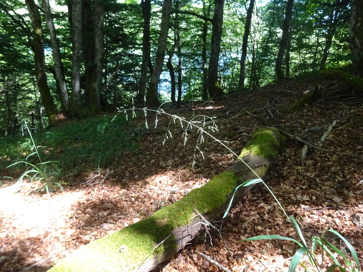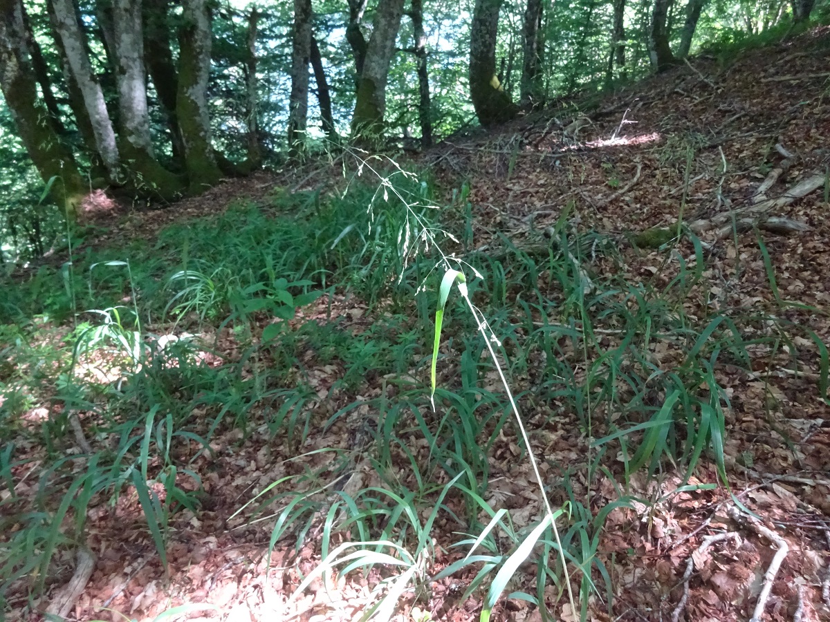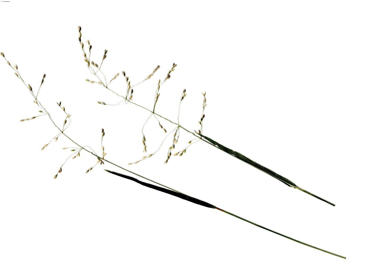 Hc – 5-15 dm – Feuilles planes assez larges glabres, ligule obtuse – Large panicule très finement diffuse à rameaux étalés à défléchis, épillets subterminaux L de 3-4 mm