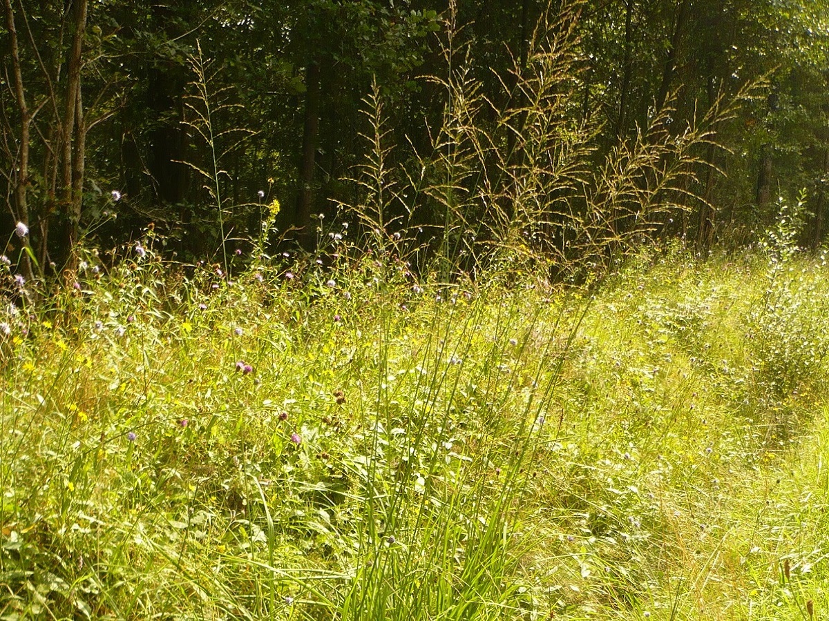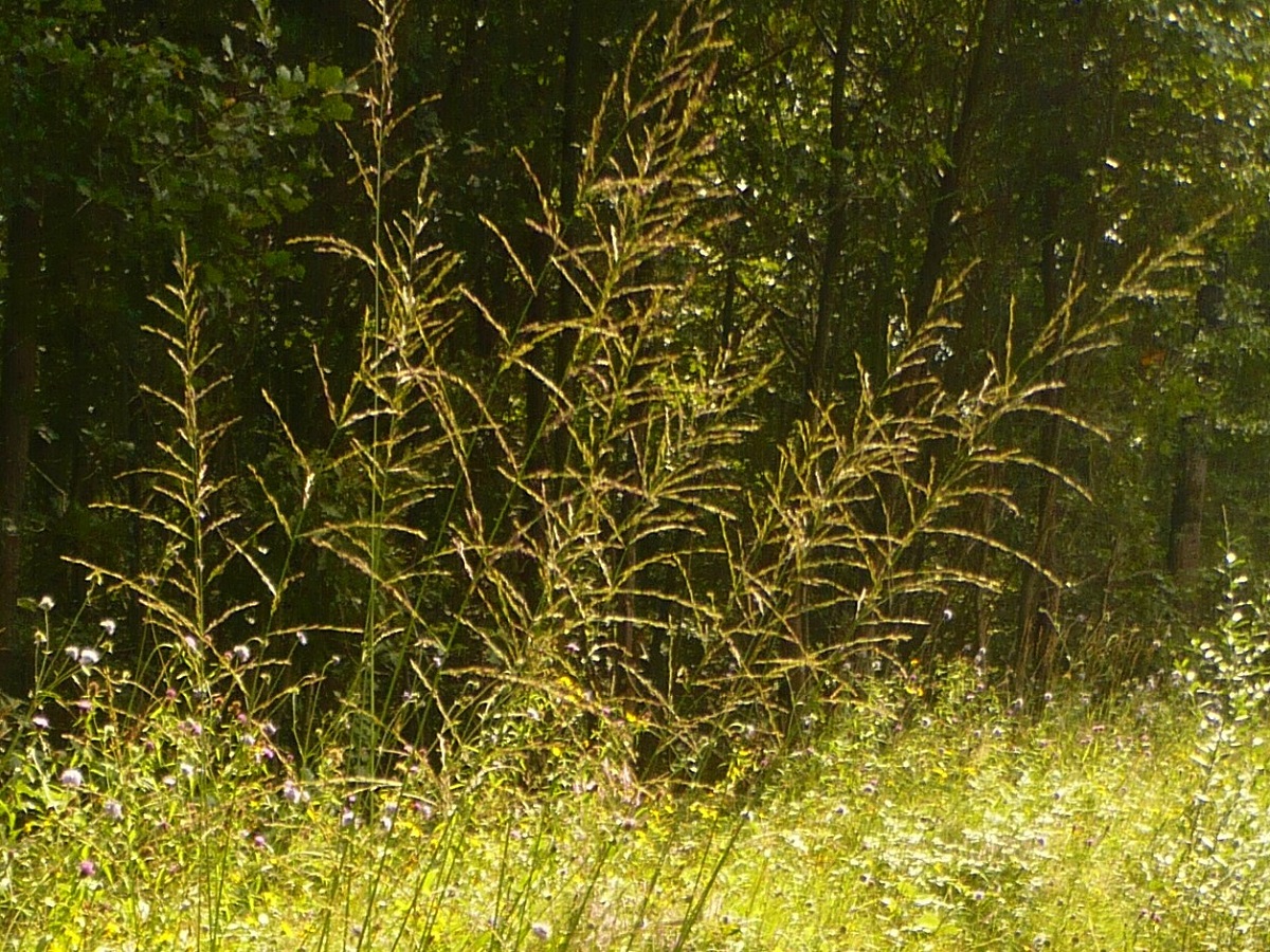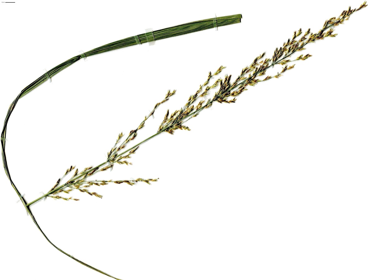 Hc – 10-25 dm – Élevée, longues feuilles aiguës > 8 mm de large – Grande panicule violacée à rameaux étalés, fleur inférieure à glumelle acuminée > 5 mm de long