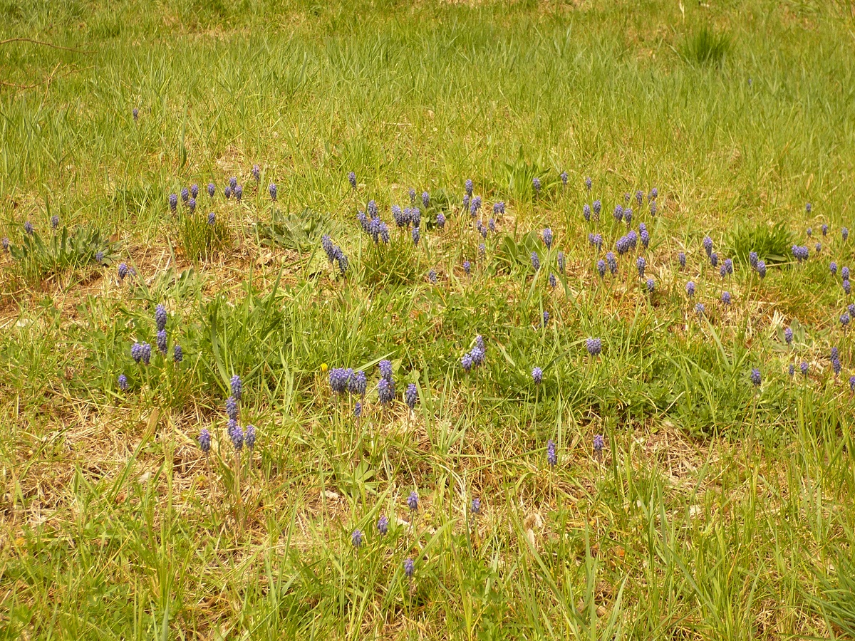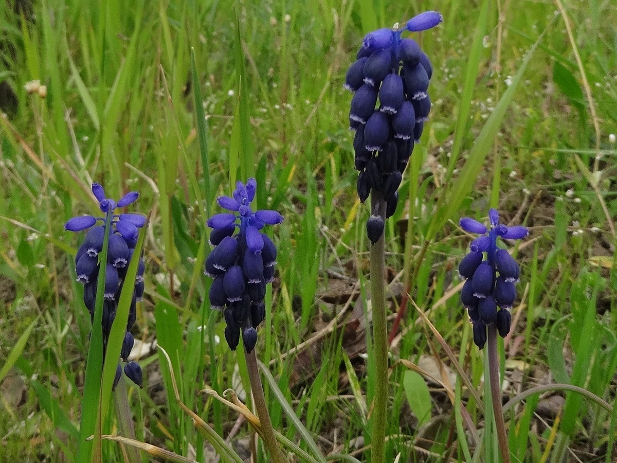 G à bulbe – 1-2,5 dm – Feuilles basales fines, canaliculées – Grappe dense ovoïde-cylindrique de fleurs en cloche bleu-violet ± foncé, à odeur de prune – Capsule à 3 loges