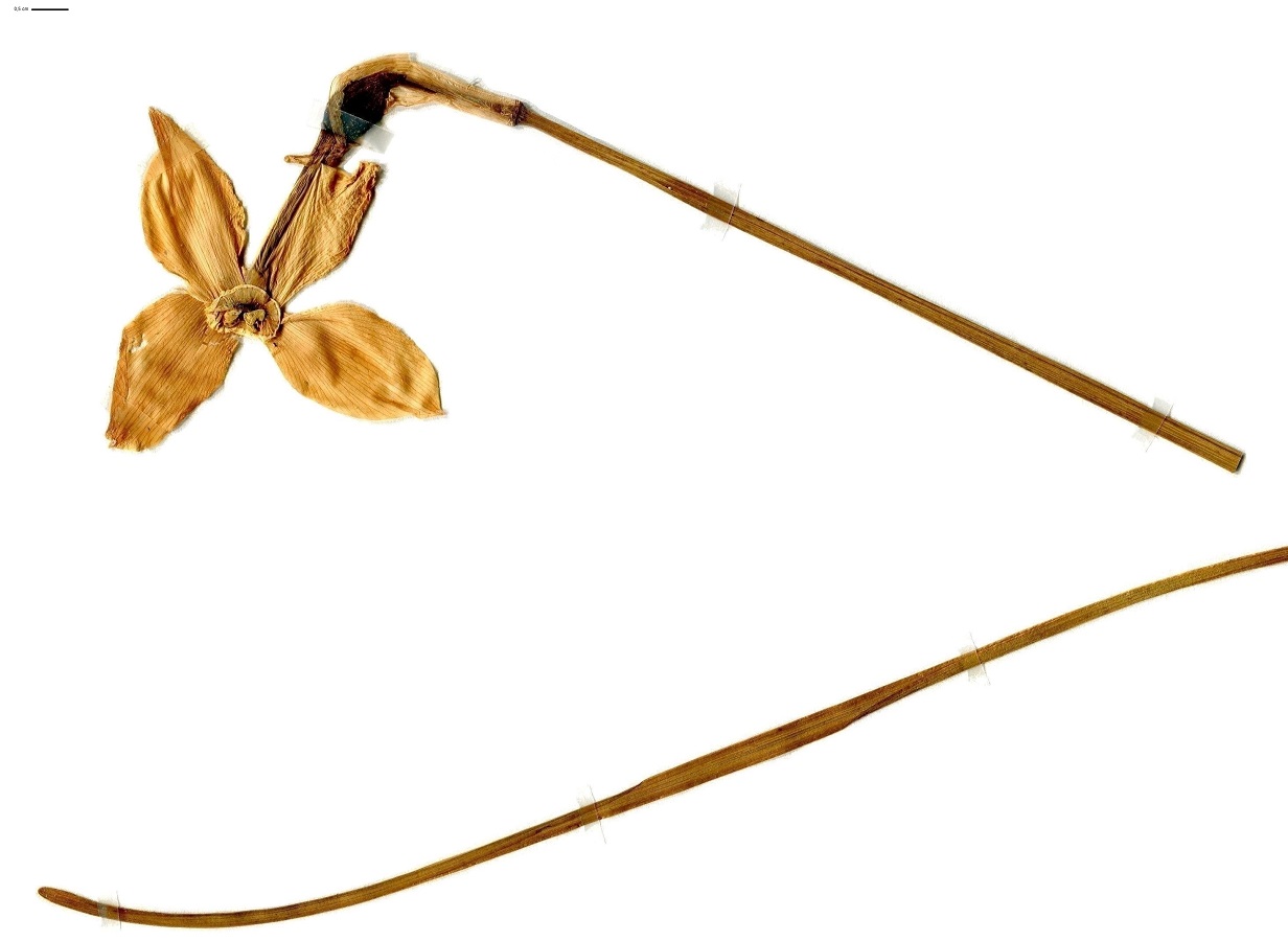 G à bulbe – 3-5 dm – Feuilles fines, allongées, obtuses, glauques – Grande fleur très parfumée, à couronne courte, jaune bordée de rouge, tépales ovales blancs – Capsule ovoïde