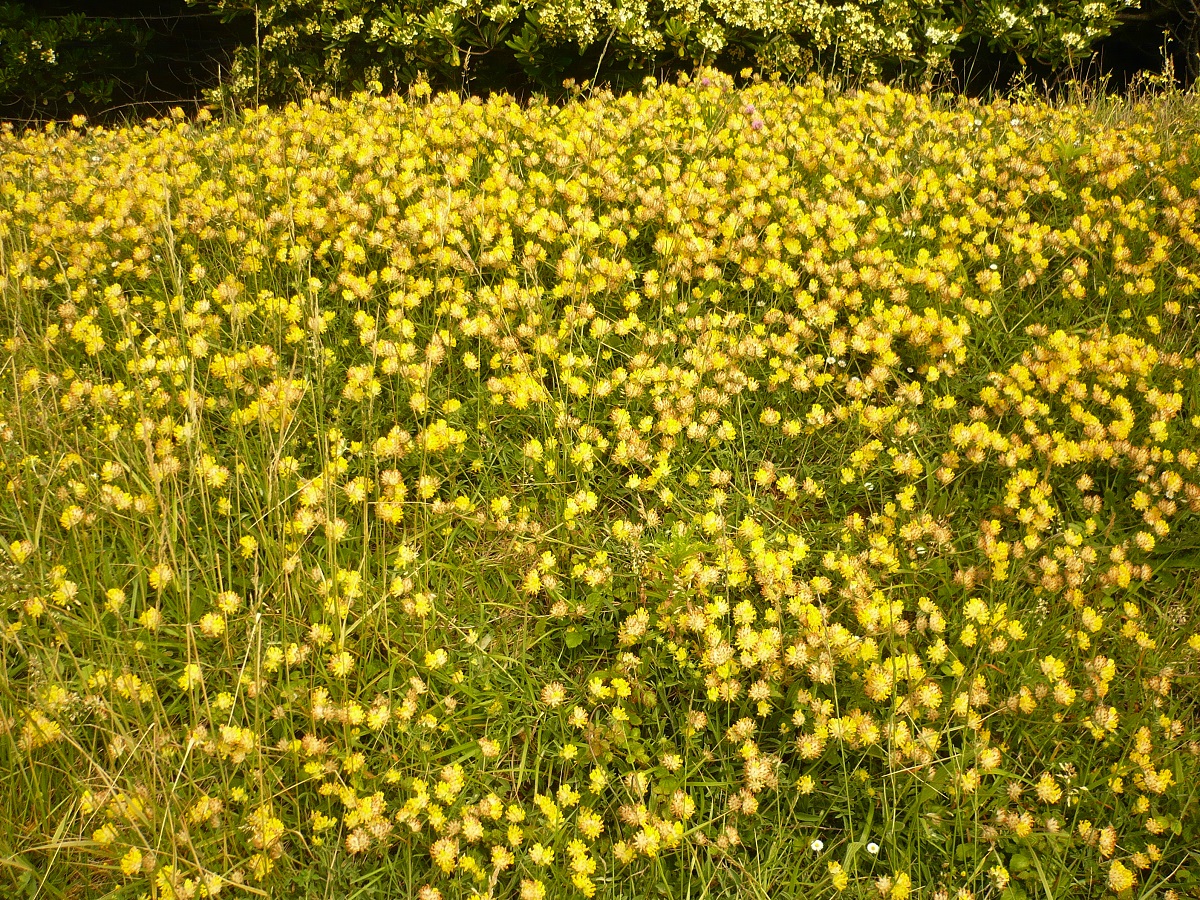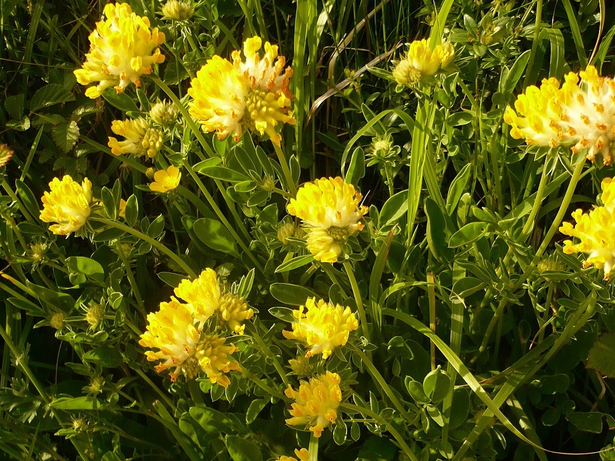 Hc – 2-4 dm – Tige très ramifiée, feuilles < unifoliolées, les > à foliole terminale elliptique + grande – Fleurs jaunes en têtes ± globuleuses sessiles de Ø 3-4 cm, calice concolore