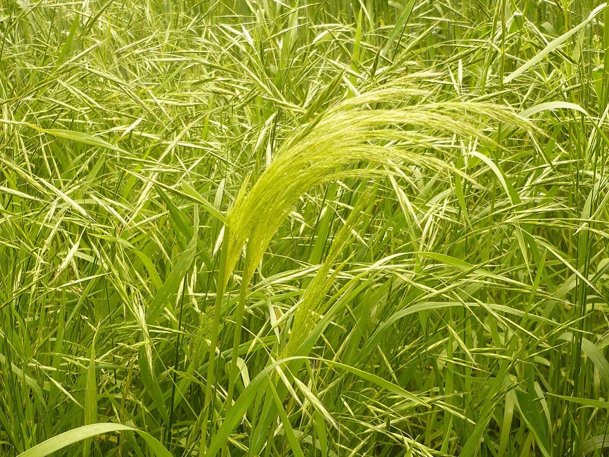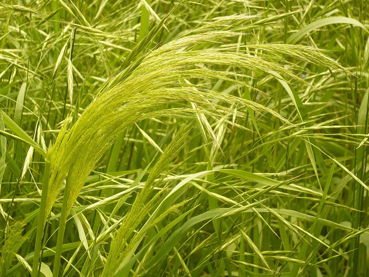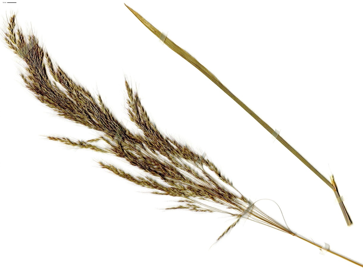 Th – 5-10 dm – Feuilles étroites, ligule longue – Panicule soyeuse penchée à longs rameaux fins étalés à la floraison, anthères allongées, lemme à longue arête
