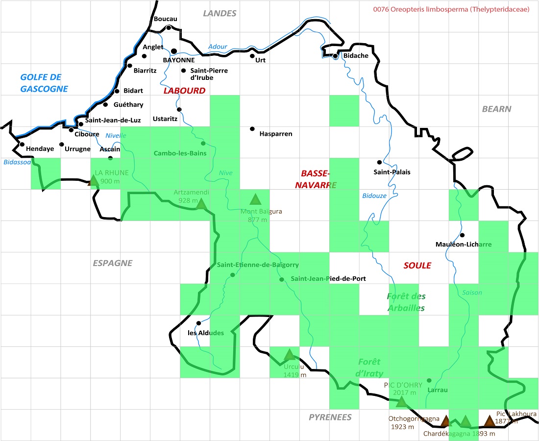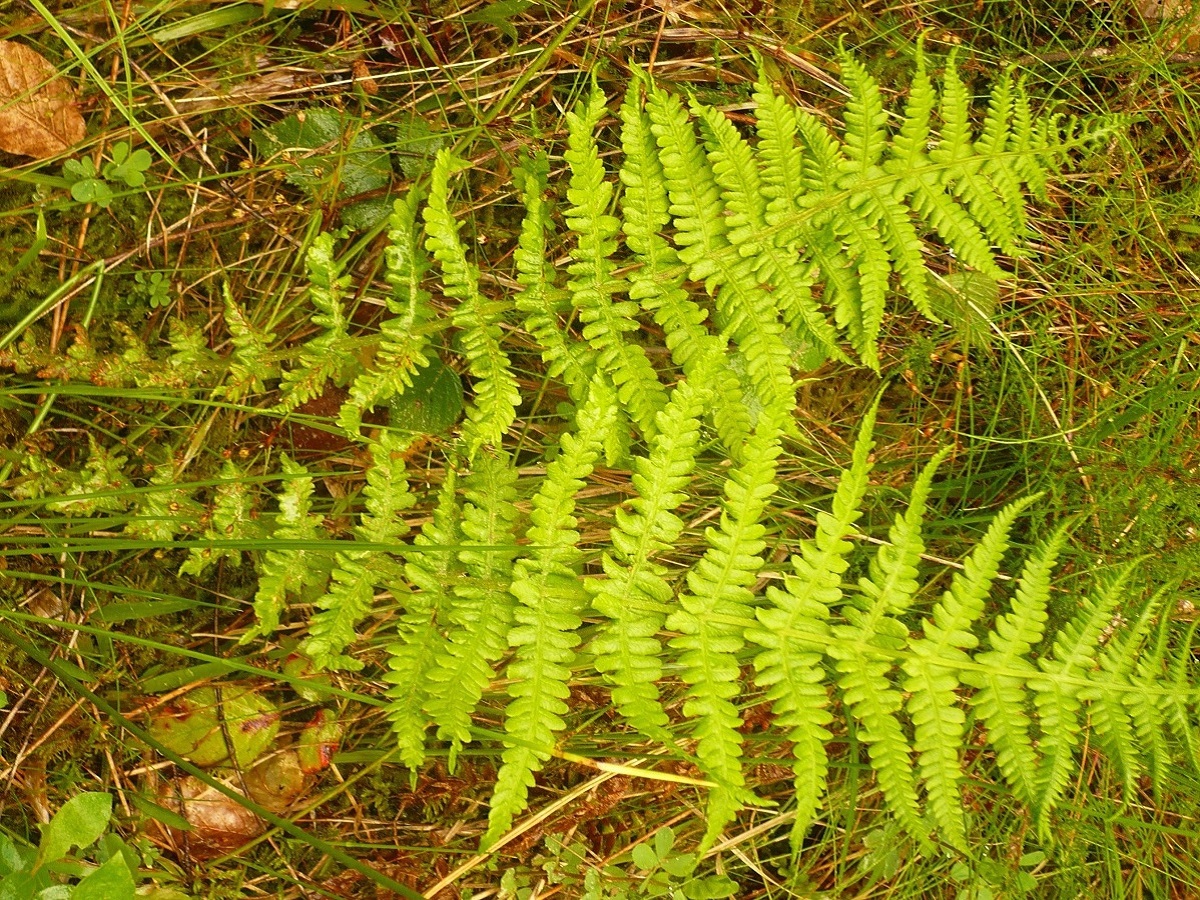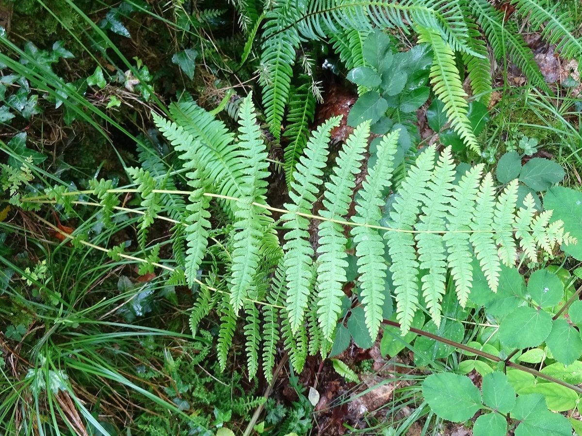 Hc – 5-10 dm – Limbe vert clair ± large, 2 fois divisé en pennes lancéolées, les basales très réduites, pinnules entières soudées à la base – Sores bruns, ronds, marginaux