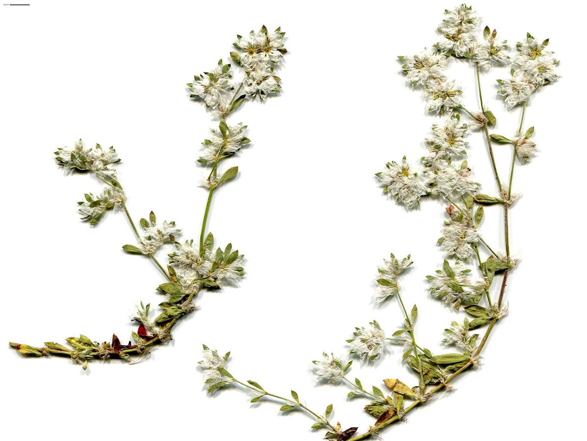 Hc/Ch – 1-4 dm – Petites feuilles opposées, oblongues-acuminées, velues – Petites fleurs en glomérules de Ø ≃ 1,5 cm, à sépales scarieux, à larges bractées argentées en cornet