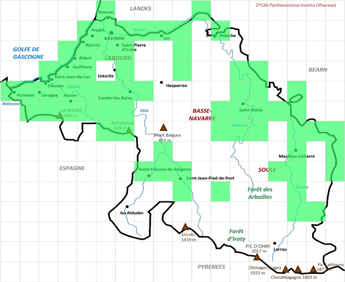 Nom Latin du taxon (Famille) Parthenocissus inserta (Vitaceae) - Synonymes Latins - nc Nom Français du taxon Vigne-vierge commune - Autres Noms Français - nc Nom en Euskara nc - Autres Noms en Euskara - nc Identifiant 2752b