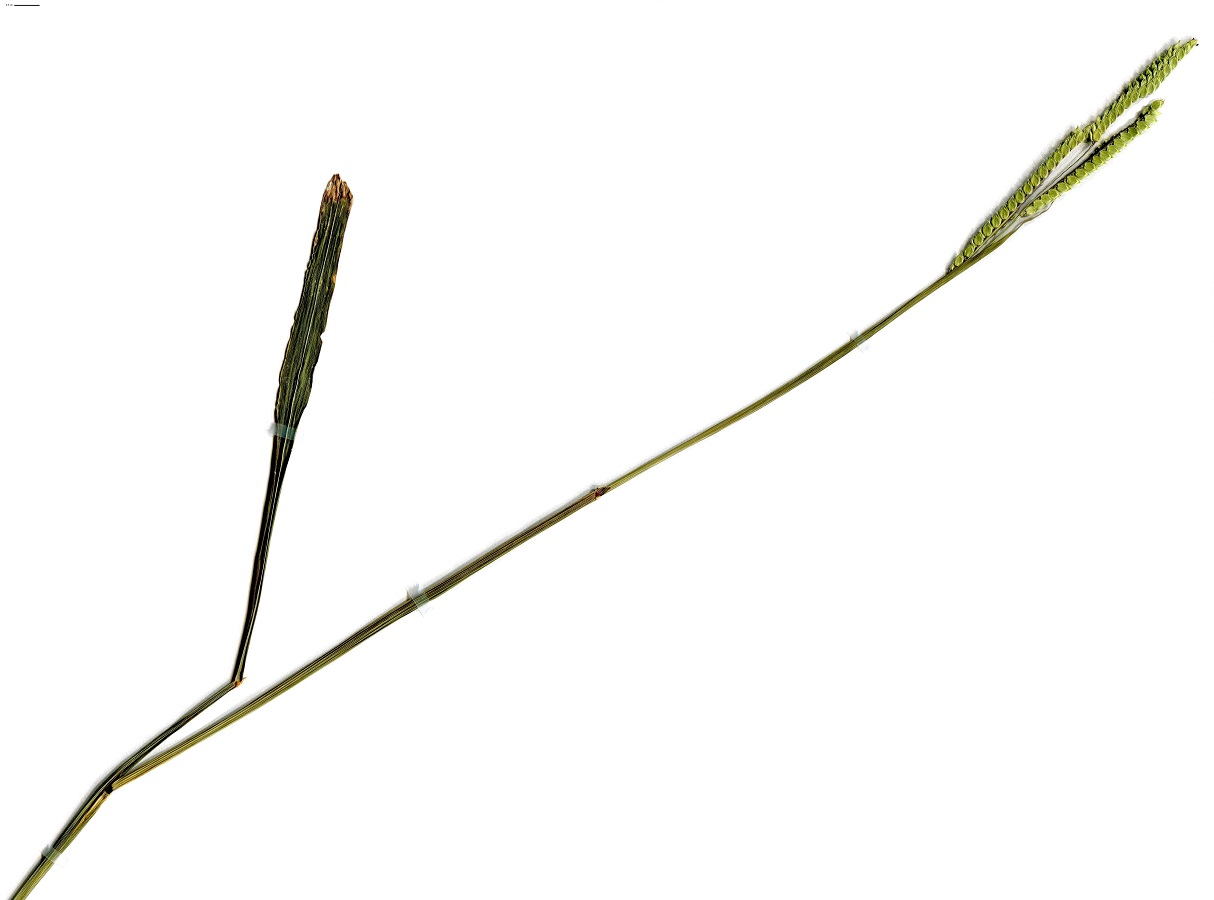 Hc – 4-10 dm – Feuilles lancéolées et gaines glabres, ligule longue, ciliée – Inflorescence ± penchée à (2)3-7 épis longs et assez épais, épillets ovoïdes, glume > laineuse