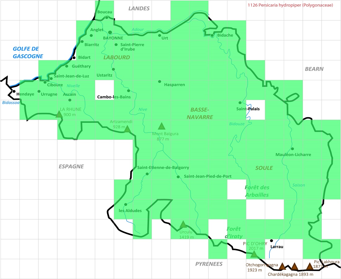 Nom Latin du taxon (Famille) Persicaria hydropiper (Polygonaceae) - Synonymes Latins – (Syn. Polygonum hydropiper) Nom Français du taxon Renouée poivre d'eau - Autres Noms Français - nc Nom en Euskara Ur-piperra - Autres Noms en Euskara - Basa piperra - Piper-belarra Identifiant 1126