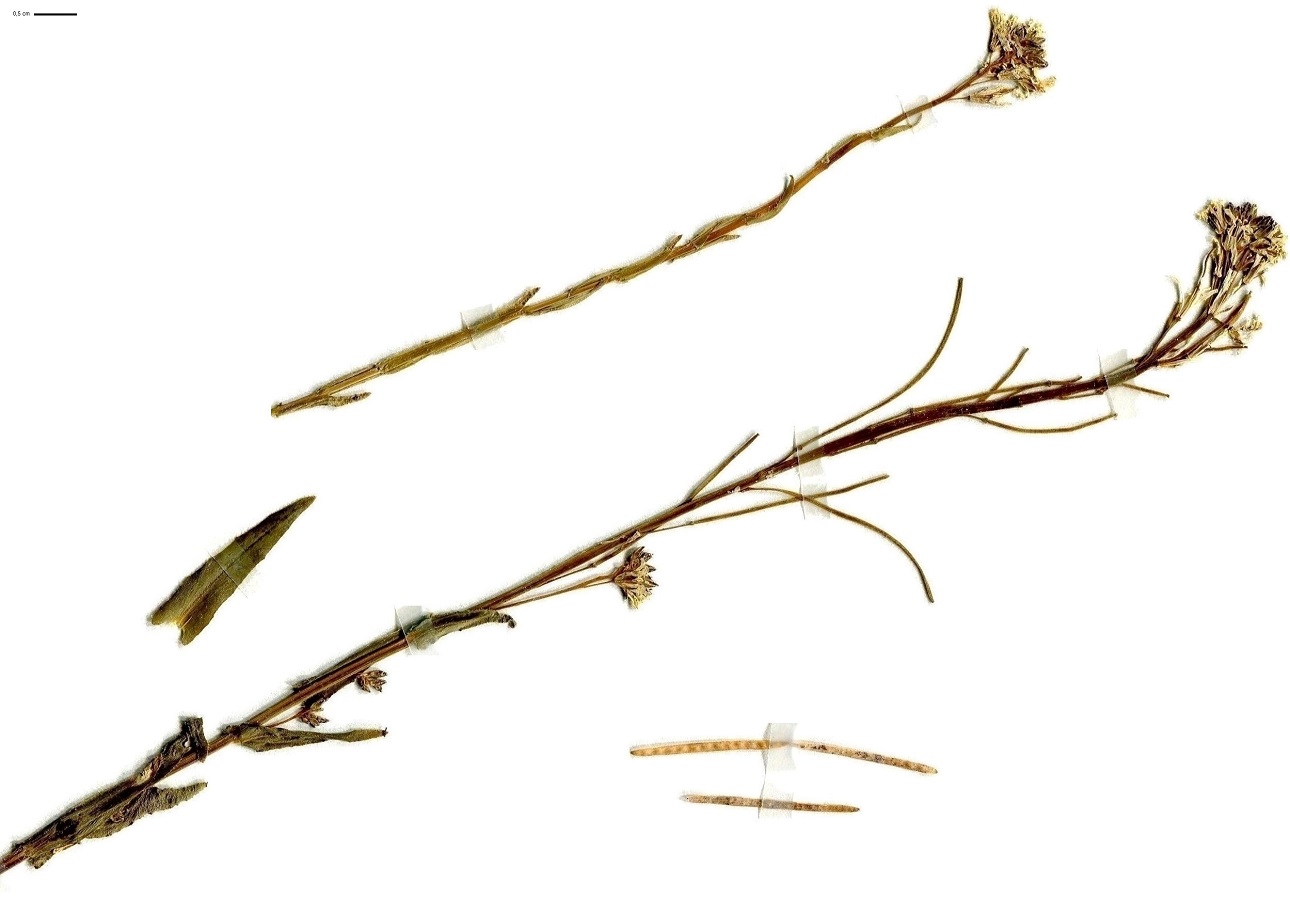 Hc – 4-8 dm – Tige dressée, feuilles velues oblongues ± dentées, les > appliquées, à oreillettes nettes, divergentes – Fleurs à 4 pétales blancs – Siliques glabres appliquées