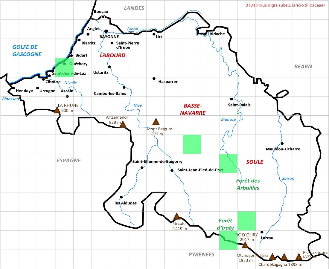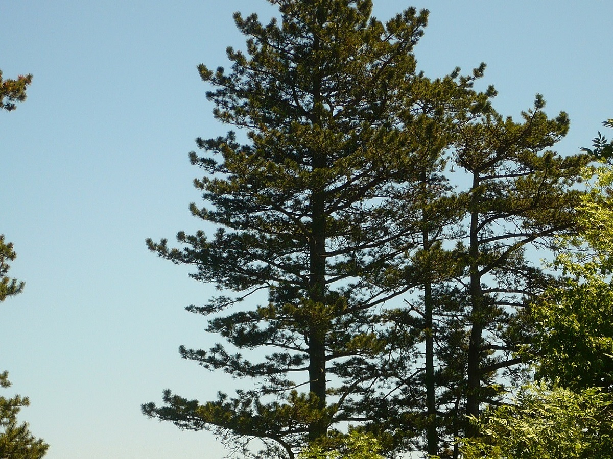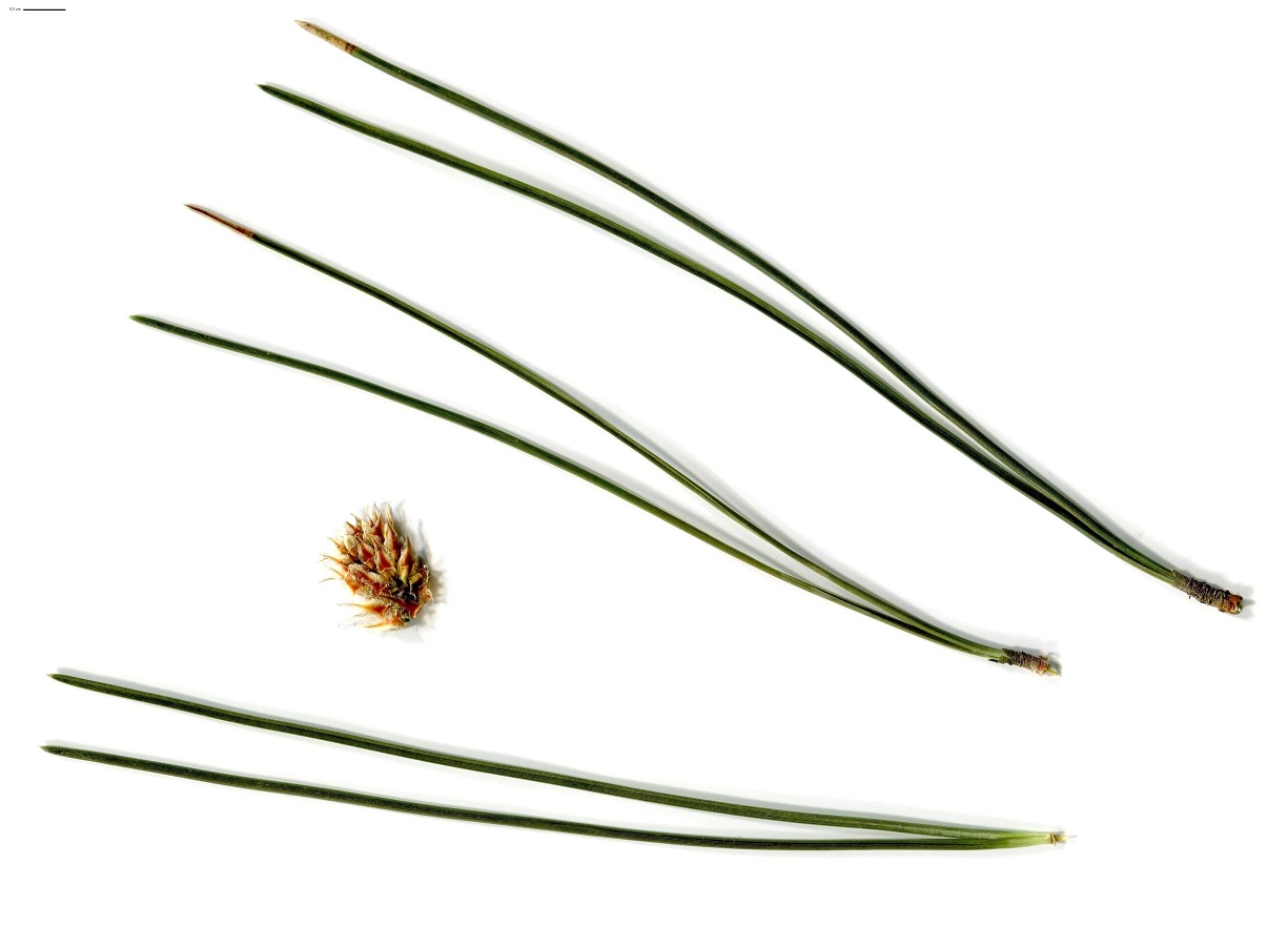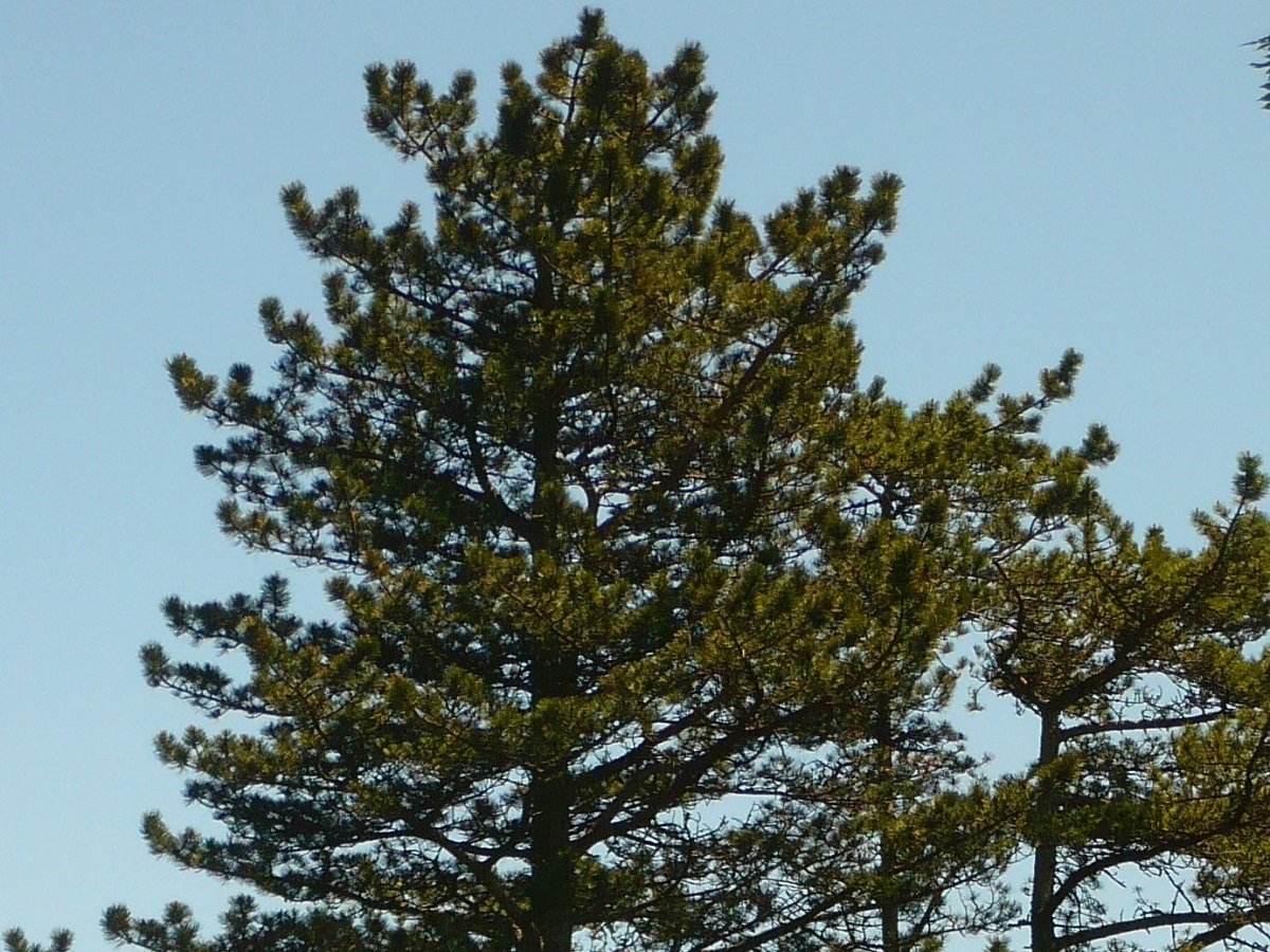 Ph – 20-40 m – Port majestueux, écorce devenant gris blanchâtre, feuillage persistant à aiguilles assez longues flexibles, ± vrillées, fasciculées par 2 – Cônes de taille moyenne