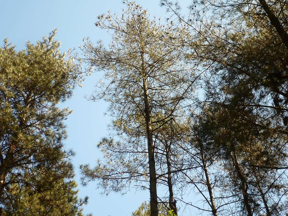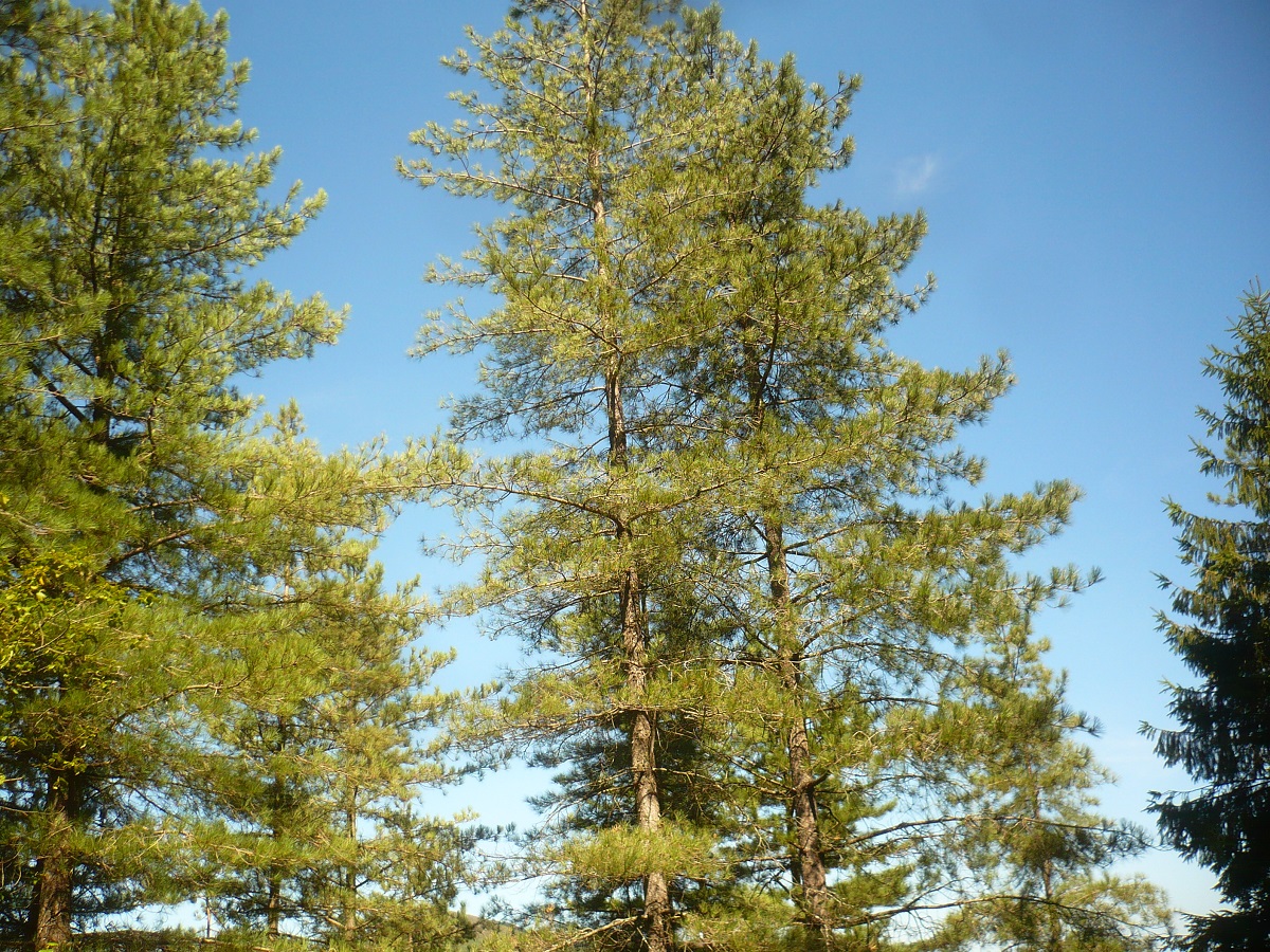 Ph – 10-20 m – Port élancé, écorce gris ± clair, feuillage clairsemé à aiguilles persistantes assez longues, vert clair, souples, fasciculées par 2 – Cônes assez petits L de 5-8 cm