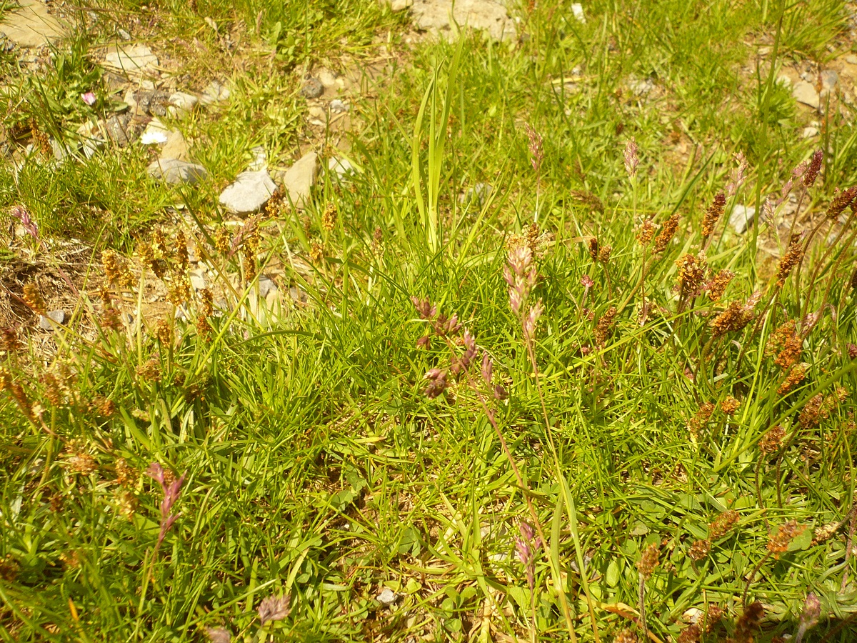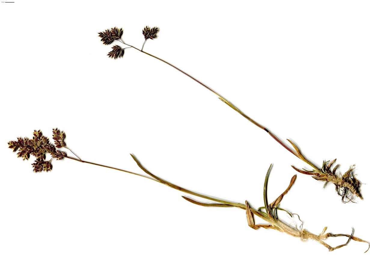 Hc – 1-3 dm – Port trapu, feuilles et rejets feuillés courts – Panicule à rameaux étalés à réfléchis, épillets assez gros écartés de l’axe, souvent brun violet, lemme à base glabre