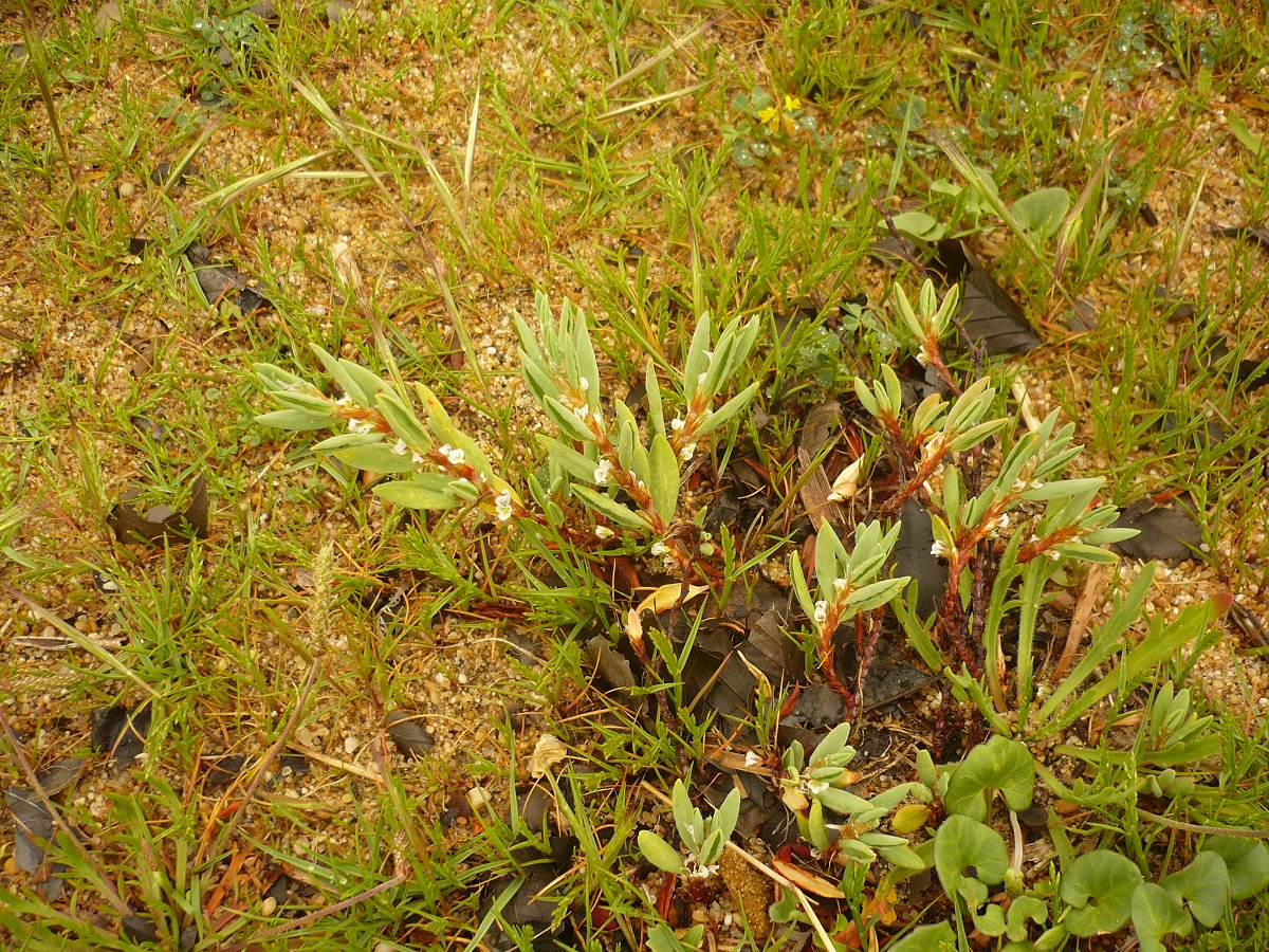 Ch – 2-4 dm – Feuilles glauques, coriaces, enroulées au bord, gaines scarieuses (ochréas) longues – Petites fleurs axillaires, blanches ou rosées – Akènes luisants