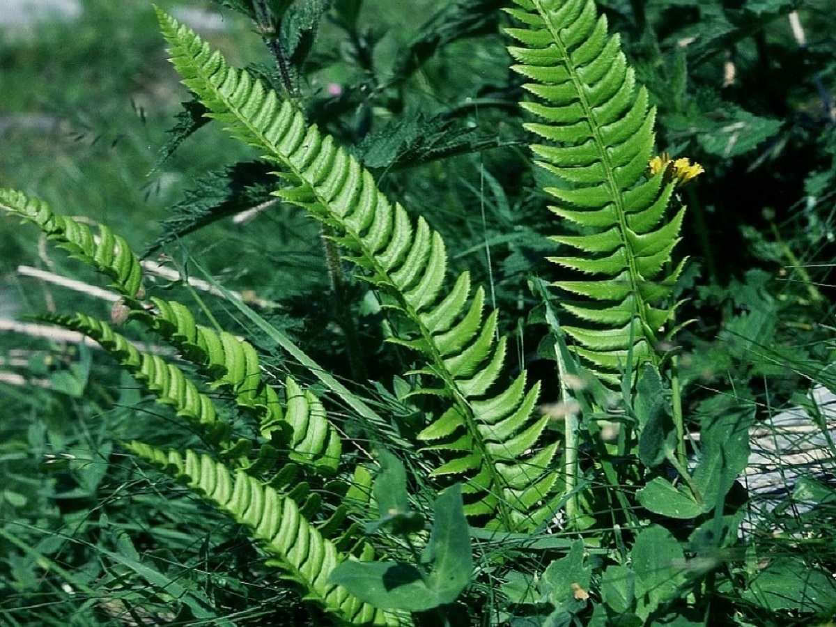 Hc – 3-6 dm – Limbe lancéolé étroit, coriace, 1 fois divisé en pennes falciformes dentées, à base auriculée, les basales réduites – Sores bruns assez petits ronds, séparés