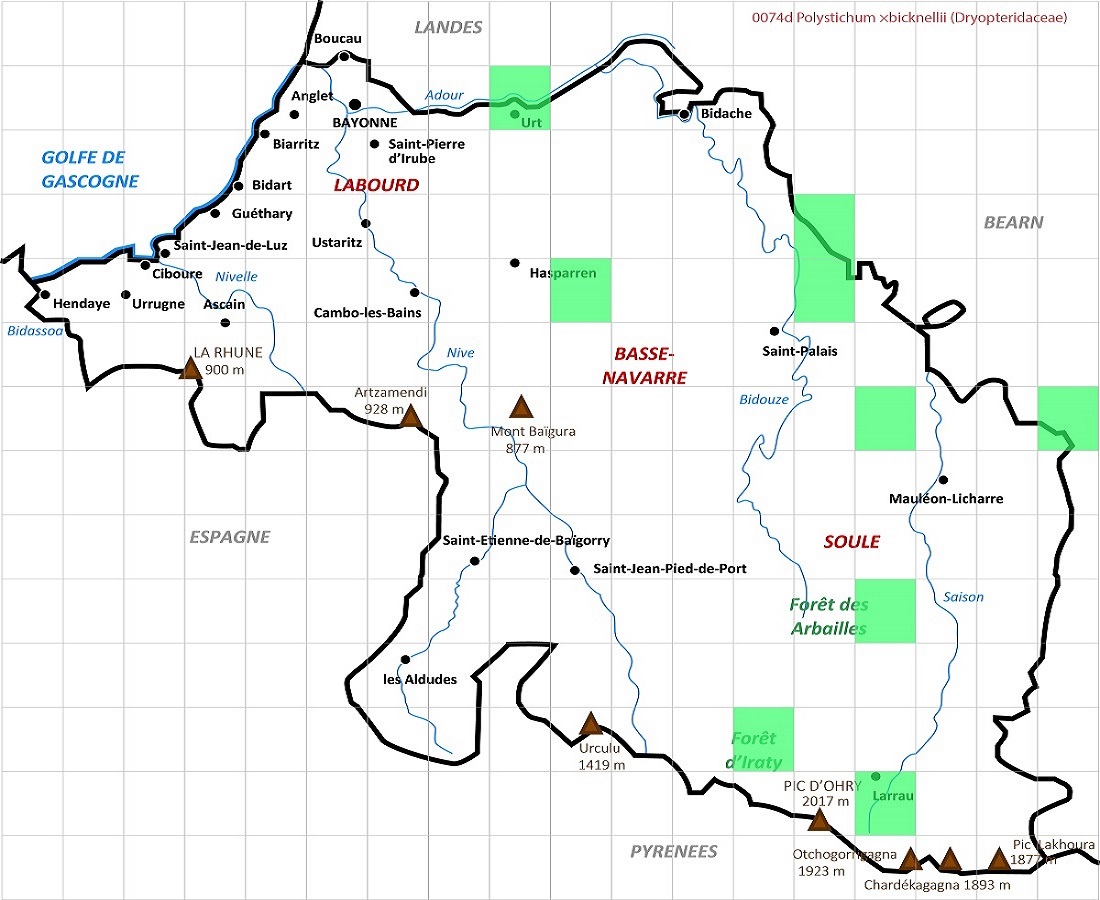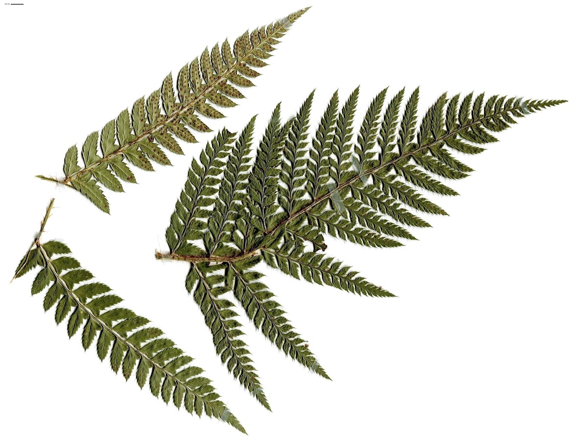 Hc – 6-12 dm – Limbe large, ± coriace, 2 fois divisé en pennes ± falciformes, les basales peu réduites, pinnules > 16 mm lobées à la base, ± pétiolulées – Sores bruns irréguliers
