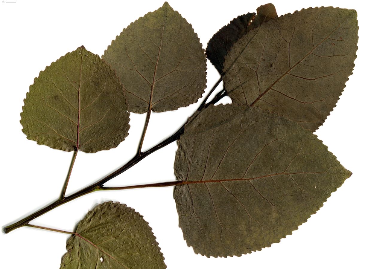 Ph – 15-30 m – Jeunes rameaux anguleux, grandes feuilles deltoïdes-aiguës, à base tronquée, fortement crénelées-dentées, ciliées, à pétiole aplati – Dioïque, graines cotonneuses