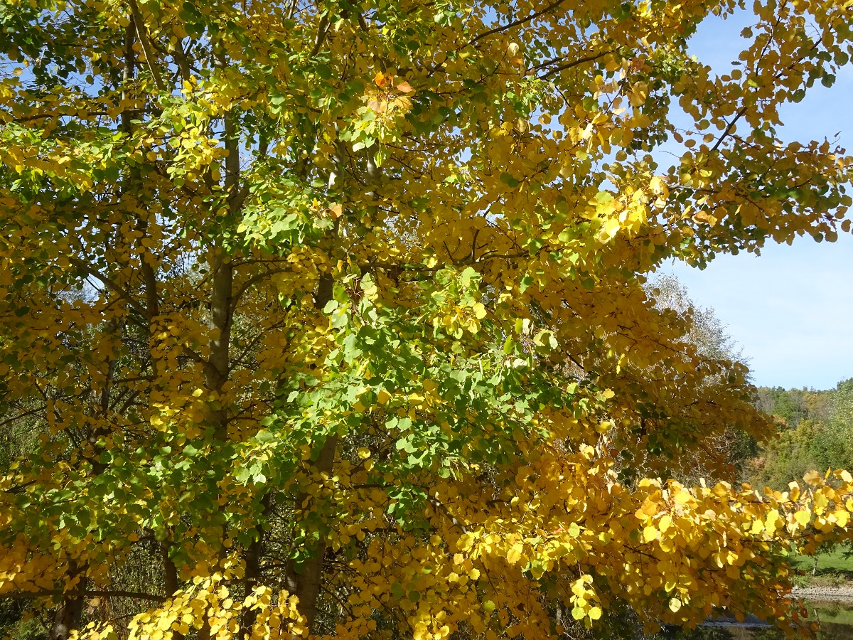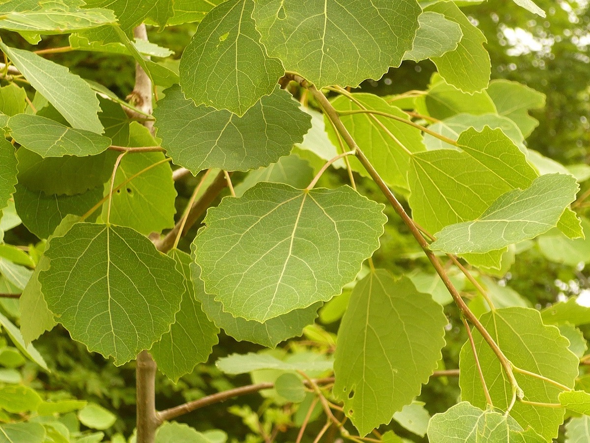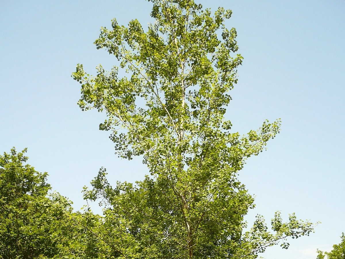 Ph – 5-20 m – Feuilles vertes orbiculaires, crénelées-dentées, à long pétiole nettement aplati, bourgeons un peu visqueux – Longs chatons pendants, les ♀ jaunes, les ♂ gris