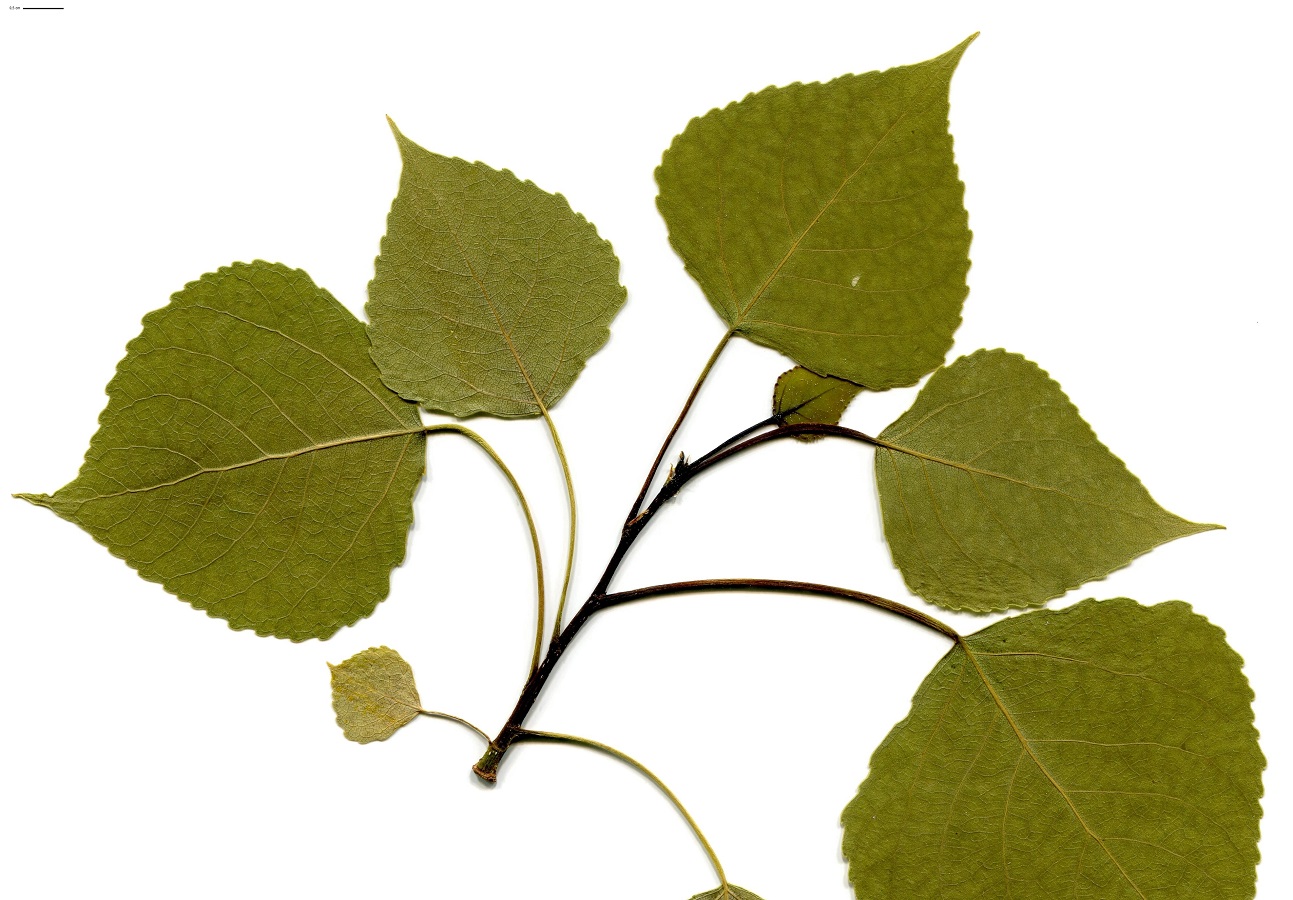 Ph – 10-30 m – Jeunes rameaux anguleux, larges feuilles ovales tronquées acuminées, crénelées-dentées, à long pétiole aplati – Chatons épais, graines très cotonneuses