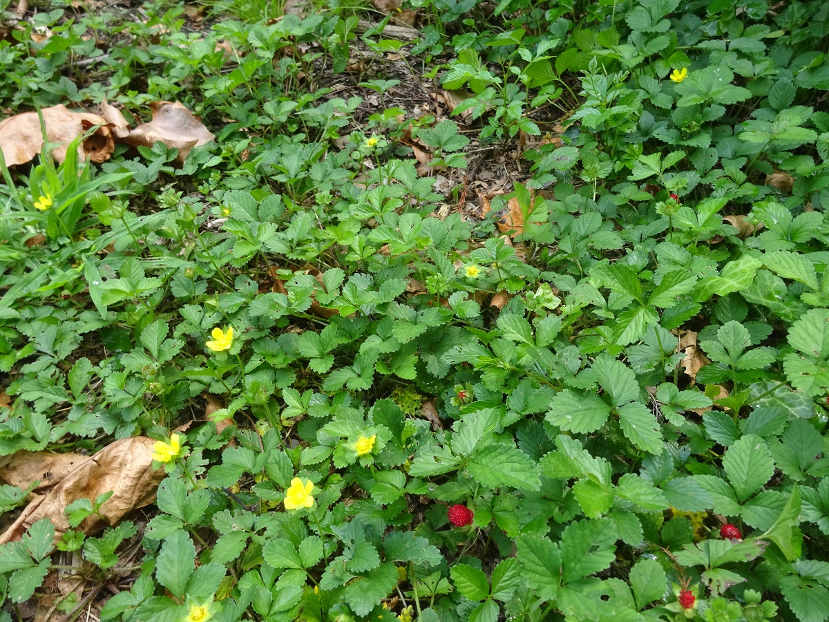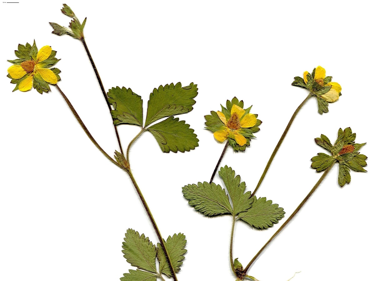 Hc – 2-5 dm – Stolonifère, feuilles à 3 folioles ovales dentées, pétiolulées – Fleurs axillaires jaunes, pièces du calicule larges trilobées – ‘’Fruit’’ rouge globuleux charnu, insipide
