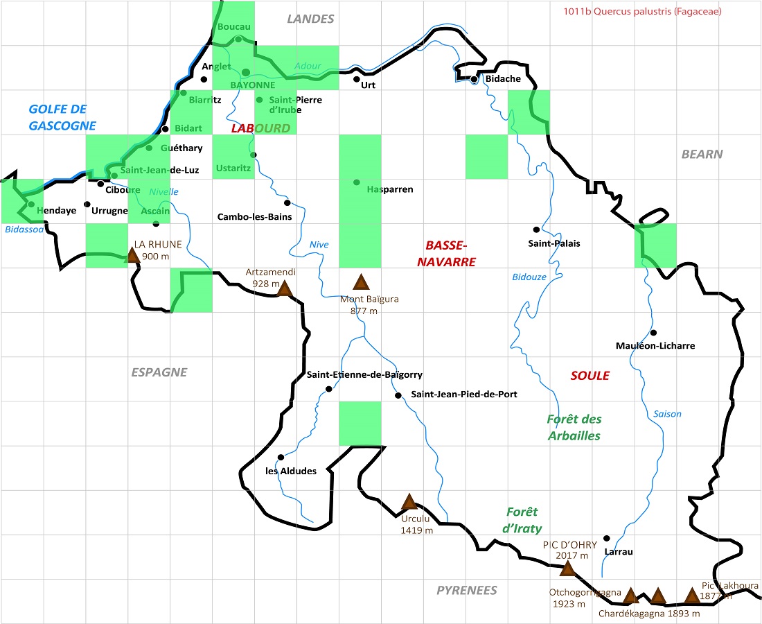 Ph – 15-30 m – Rameaux ± pendants, feuilles à très profonds lobes aigus à fine arête, velues dessous – Chatons ♂ allongés – Fruits à gland petit, cupule écailleuse ½-sphérique
