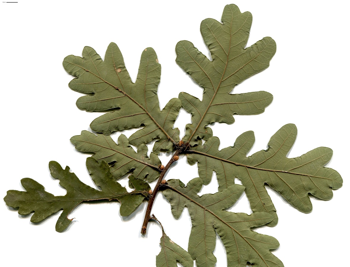 Ph – 5-20 m – Feuilles un peu velues, à 7-9 lobes profonds, obtus, à pétiole ± court, ± velu – Chatons ♂ pendants – Fruits à pédoncule ± court avec cupule velue et gland ovoïde