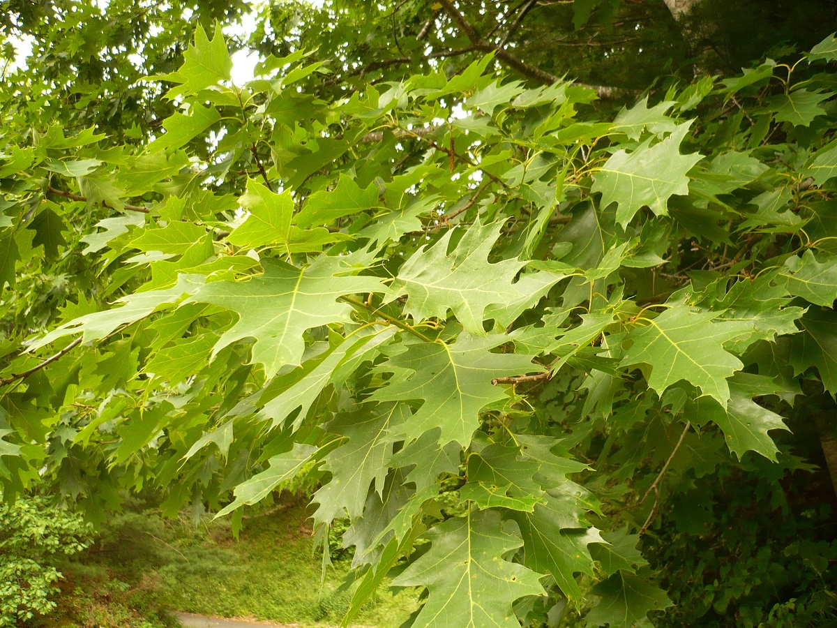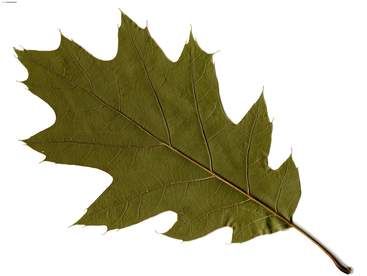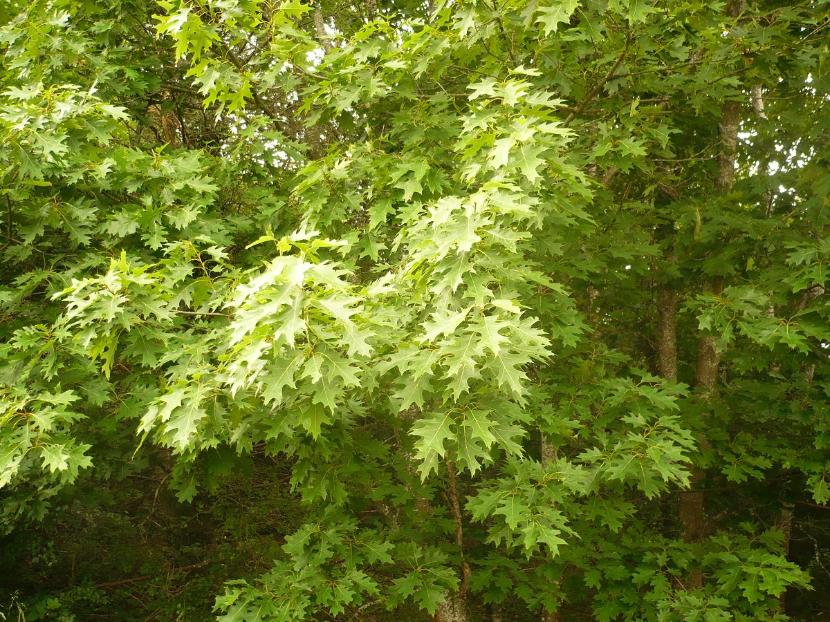 Ph – 15-30 m – Grandes feuilles à larges lobes aigus avec arête, rougissant à l’automne – Chatons ♂ assez longs – Fruits assez gros avec cupule écailleuse et gland ovoïde