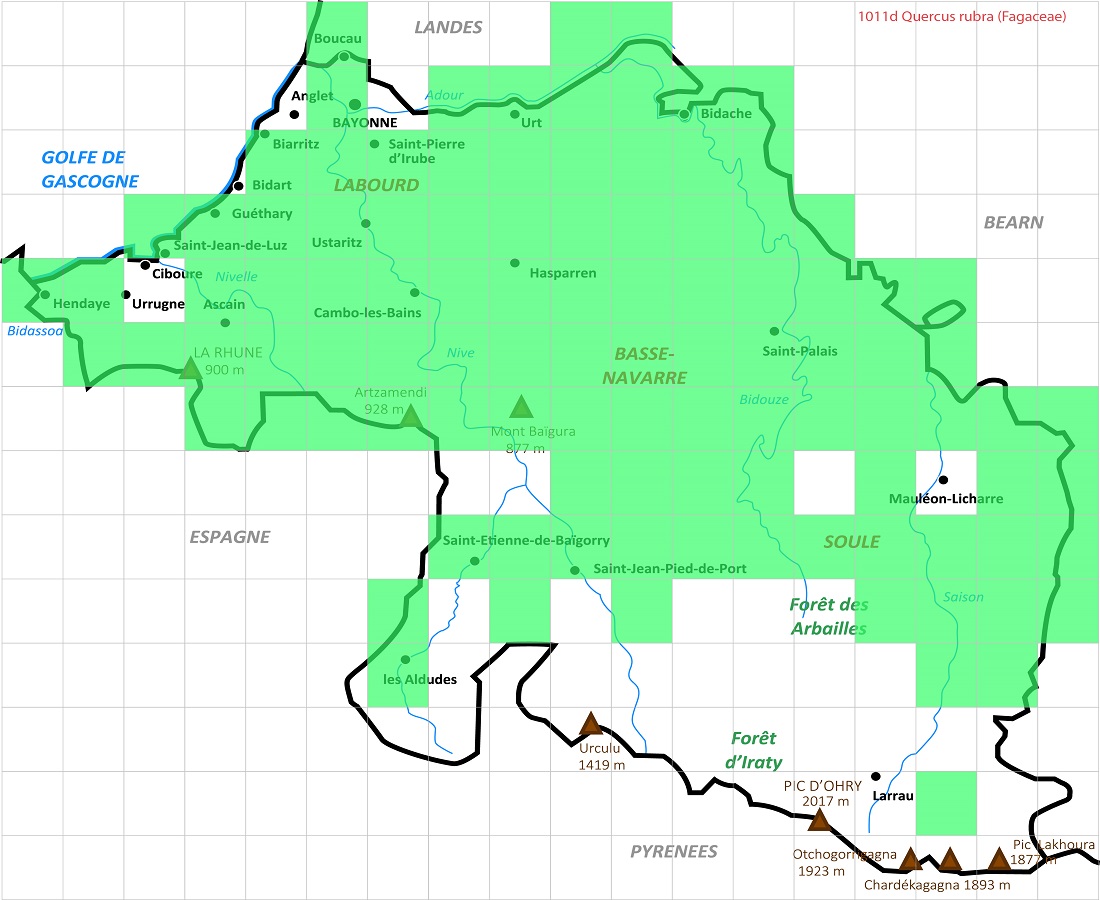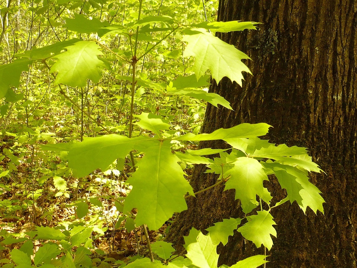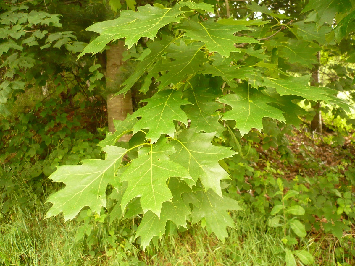Ph – 15-30 m – Grandes feuilles à larges lobes aigus avec arête, rougissant à l’automne – Chatons ♂ assez longs – Fruits assez gros avec cupule écailleuse et gland ovoïde
