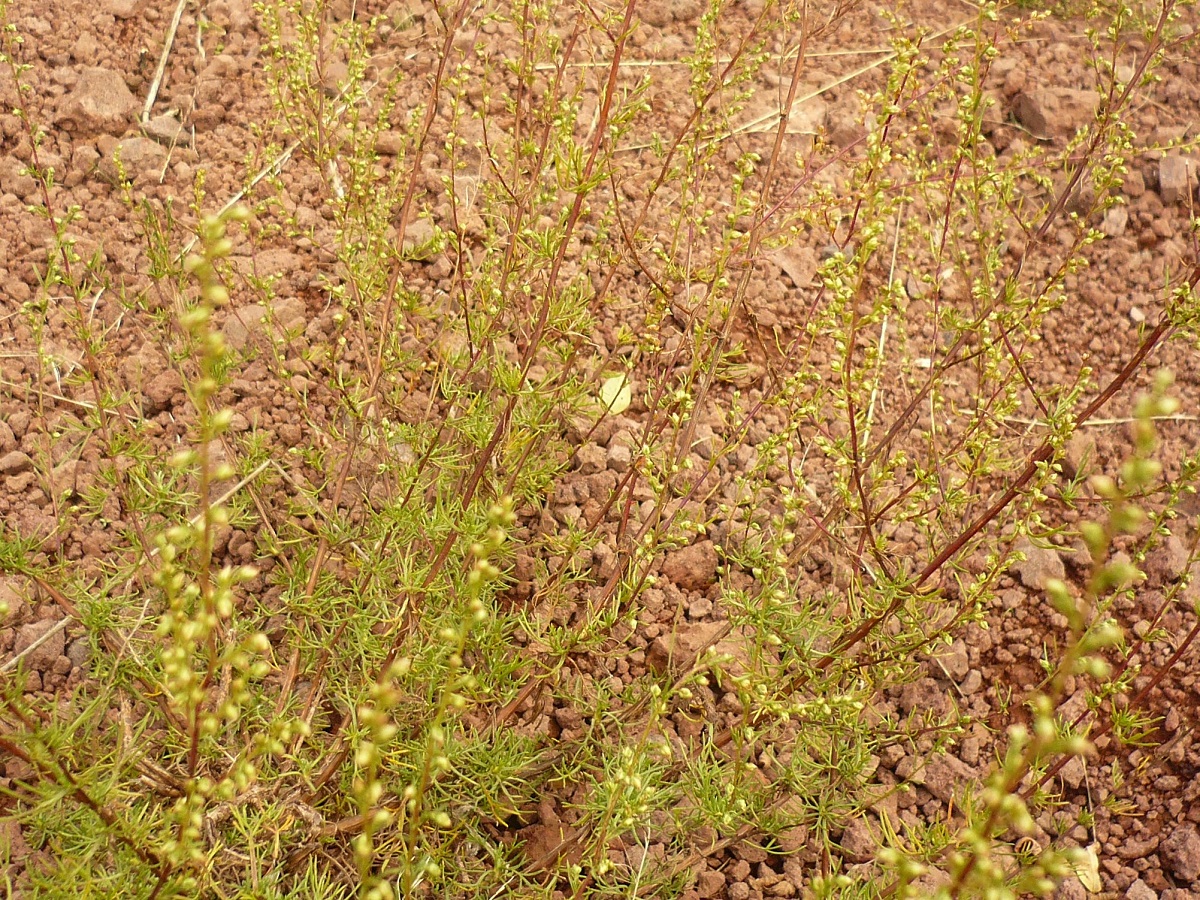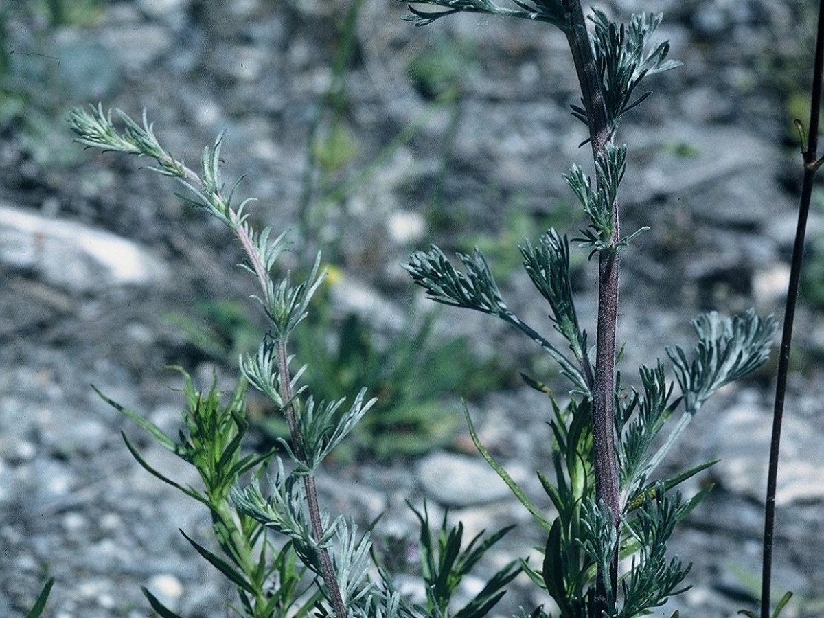 Hc/Ch – 4-8 dm – Tiges rougeâtres ascendantes grêles, feuilles à segments allongés filiformes – Panicule de petits capitules de Ø 1,5-2,5 mm globuleux à fleurons jaune rougeâtre