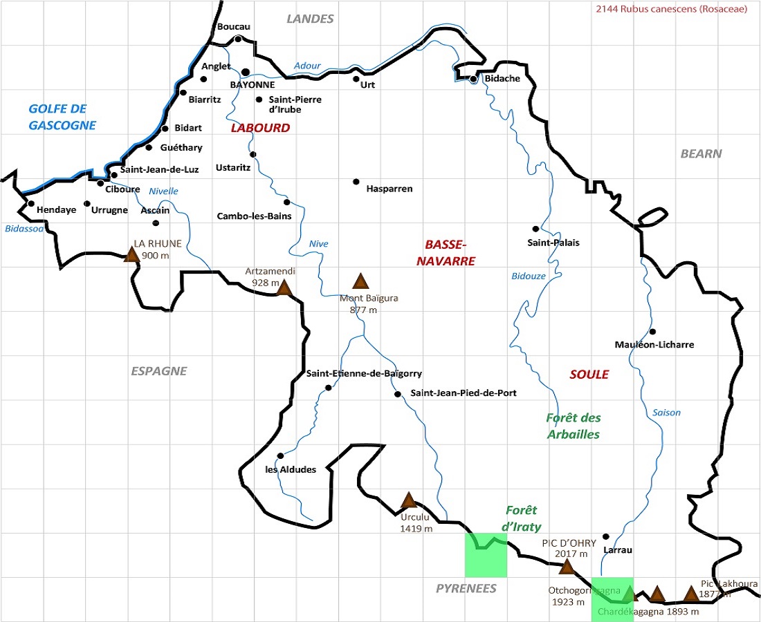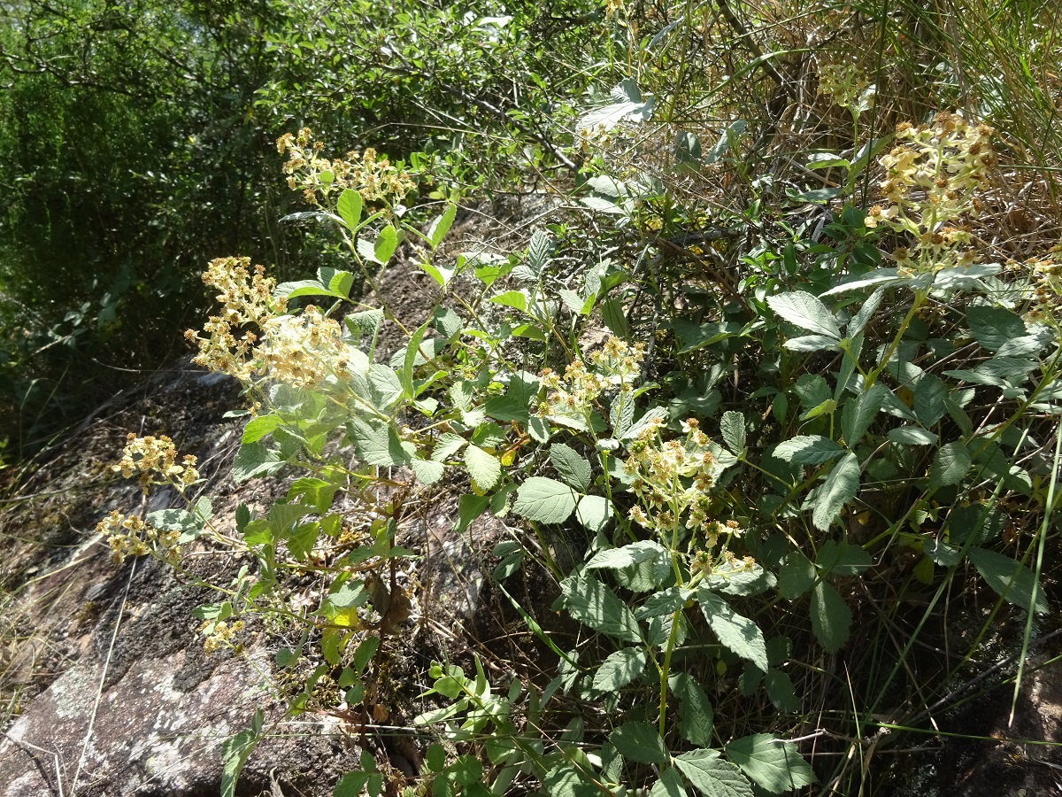 PsPh – 4-8 dm – Tiges à aiguillons ± arqués, feuilles à 3-5 petites folioles ovales dentées, velues blanchâtres surtout dessous – Fleurs blanches – Drupéoles noires