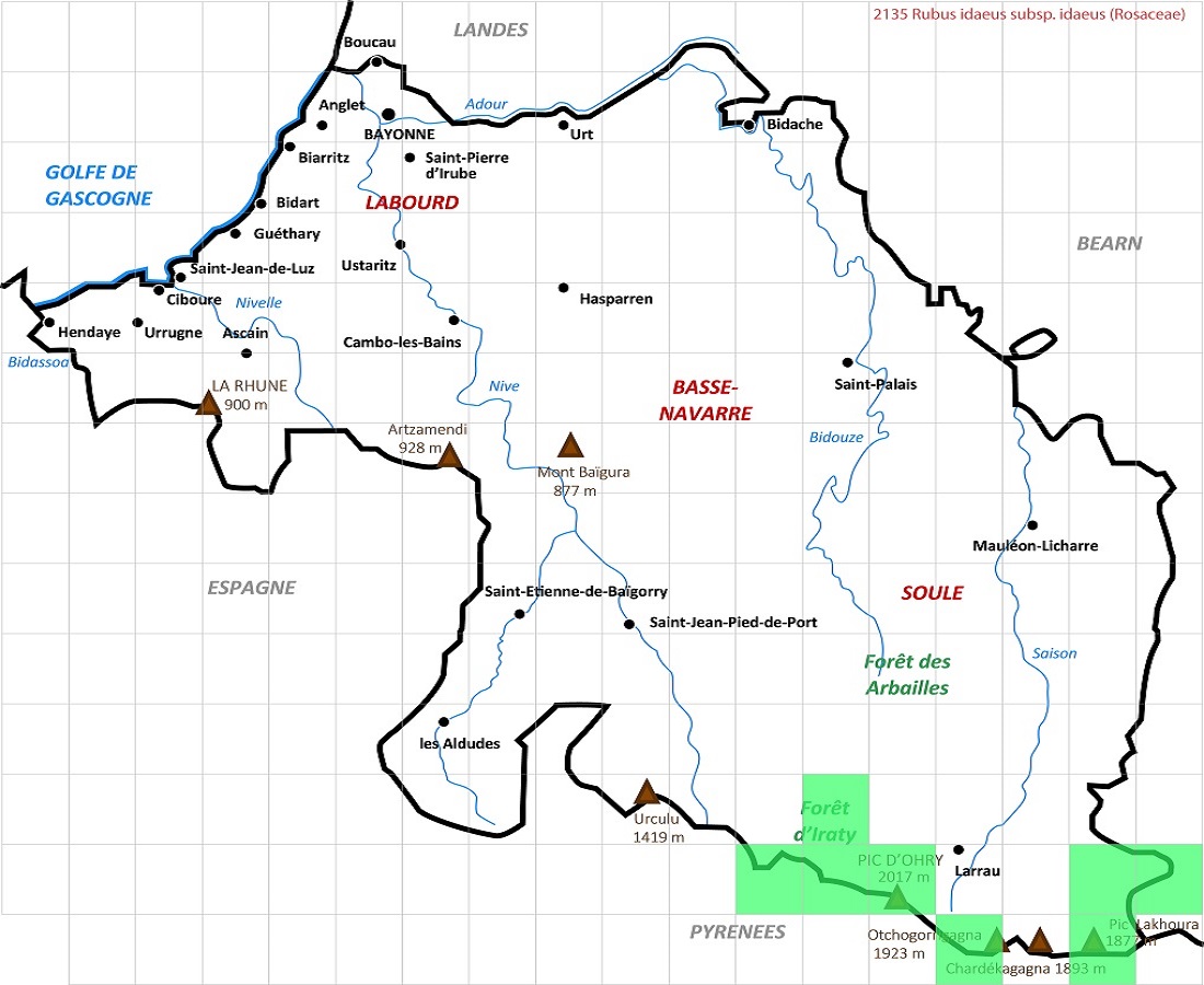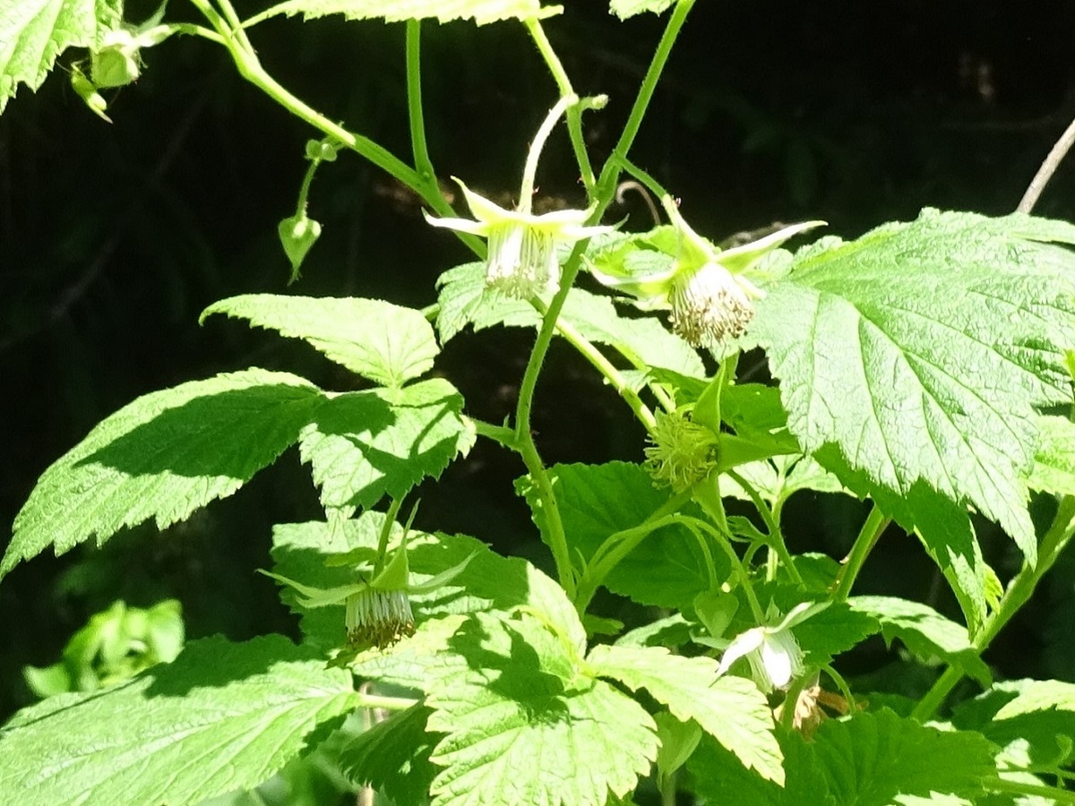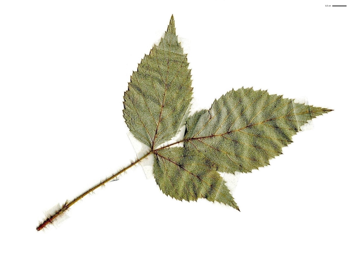 PsPh – 8-15 dm – Tige subligneuse peu armée, feuilles à 3-7 folioles ovales dentées, velues blanchâtres dessous – Fleurs blanches en petits corymbes – Drupéoles rougeâtres