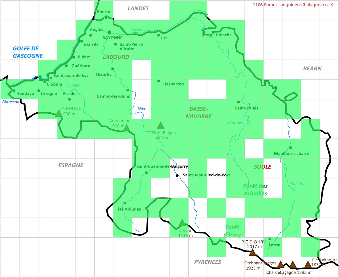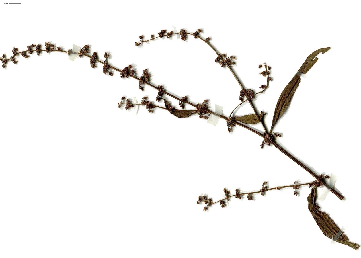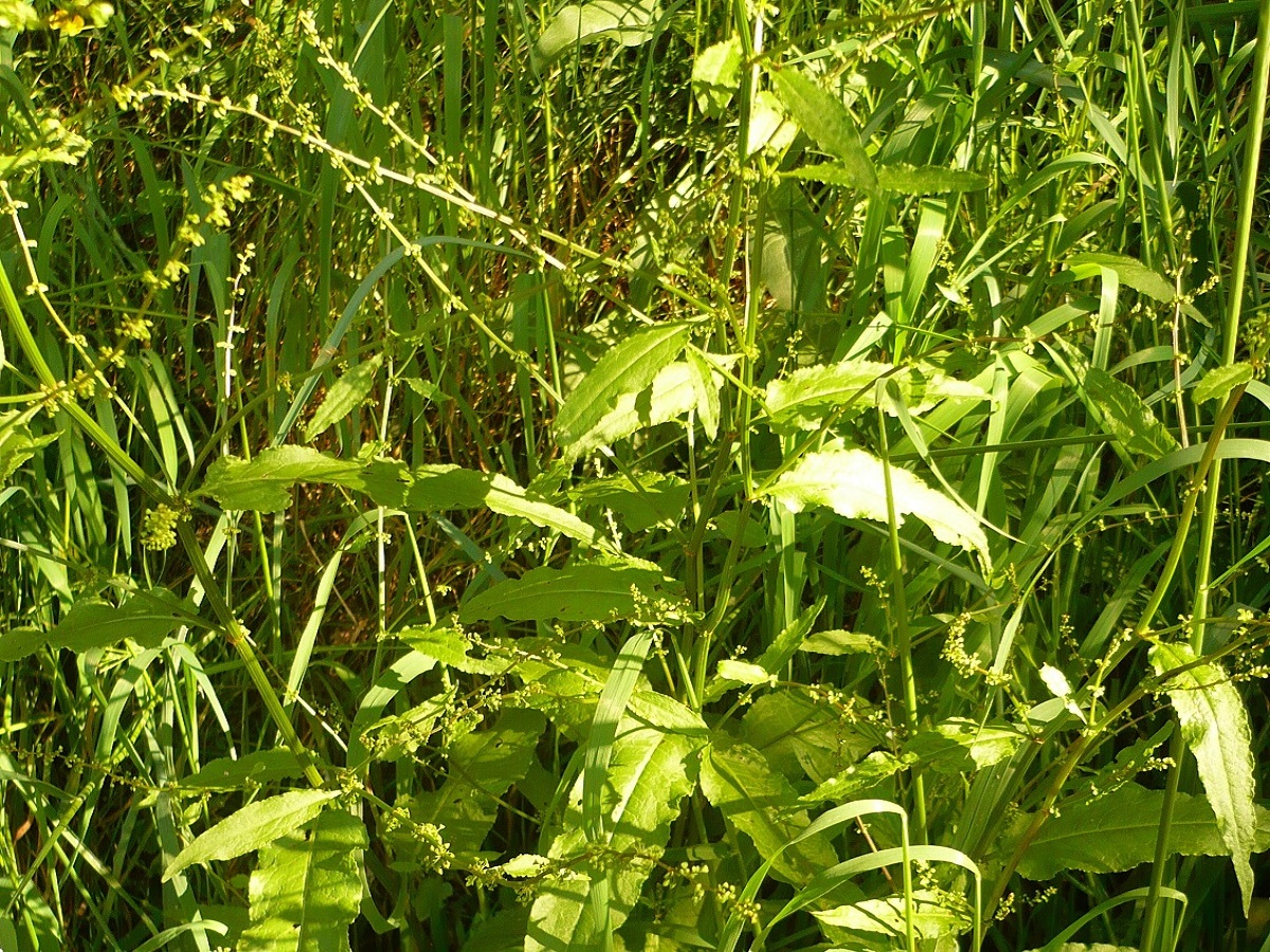 Hc – 5-10 dm – Feuilles oblongues ± aiguës, à base arrondie – Inflorescence verte ou rouge, étirée, lâche, longuement nue – Pédicelles > valves entières, 1 seule à gros granule