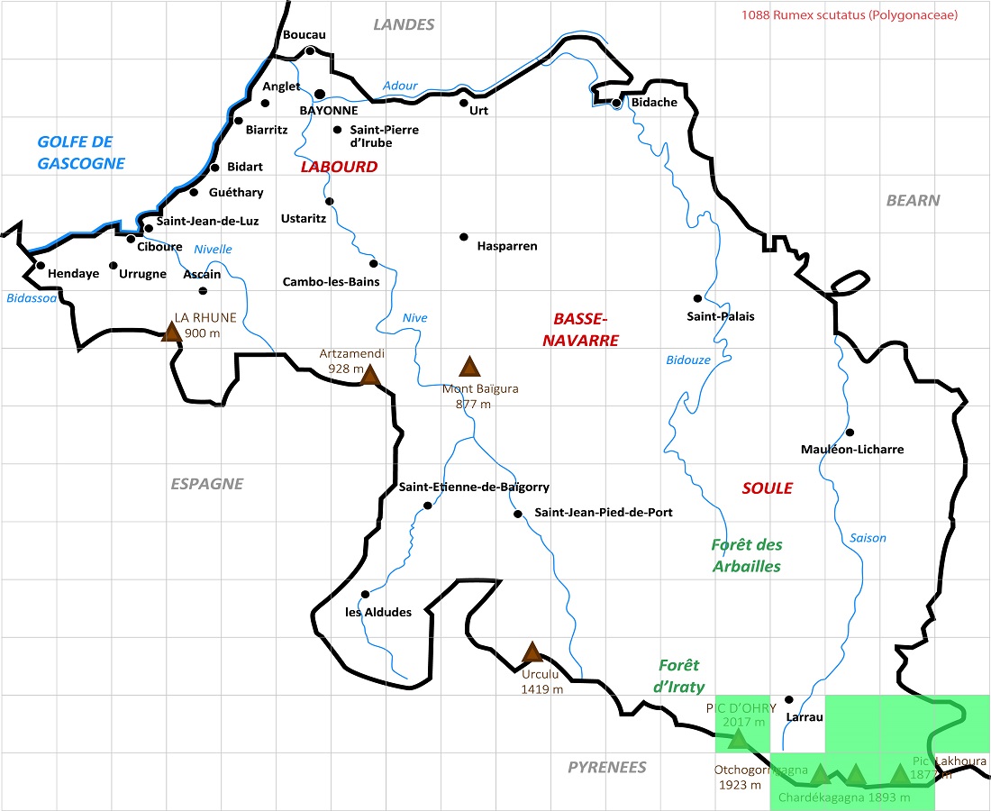 G à rhizome/Hc – 2-5 dm – Feuilles hastées larges, étranglées, à long pétiole – Fleurs ♂ et ♀ en grappes lâches effilées – Valves fructifères assez grandes, elliptiques, sans granule