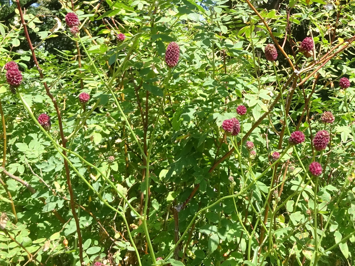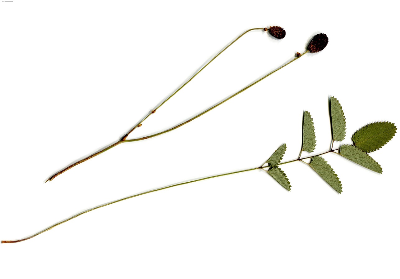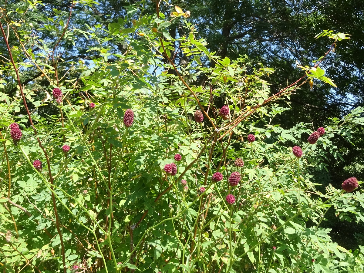 Hc – 3-10 dm – Feuilles imparipennées à 15-31 folioles ovales-oblongues nettement dentées – Petites fleurs pourpre foncé en tête ovoïdes – Calice fructifère lisse à angles ailés