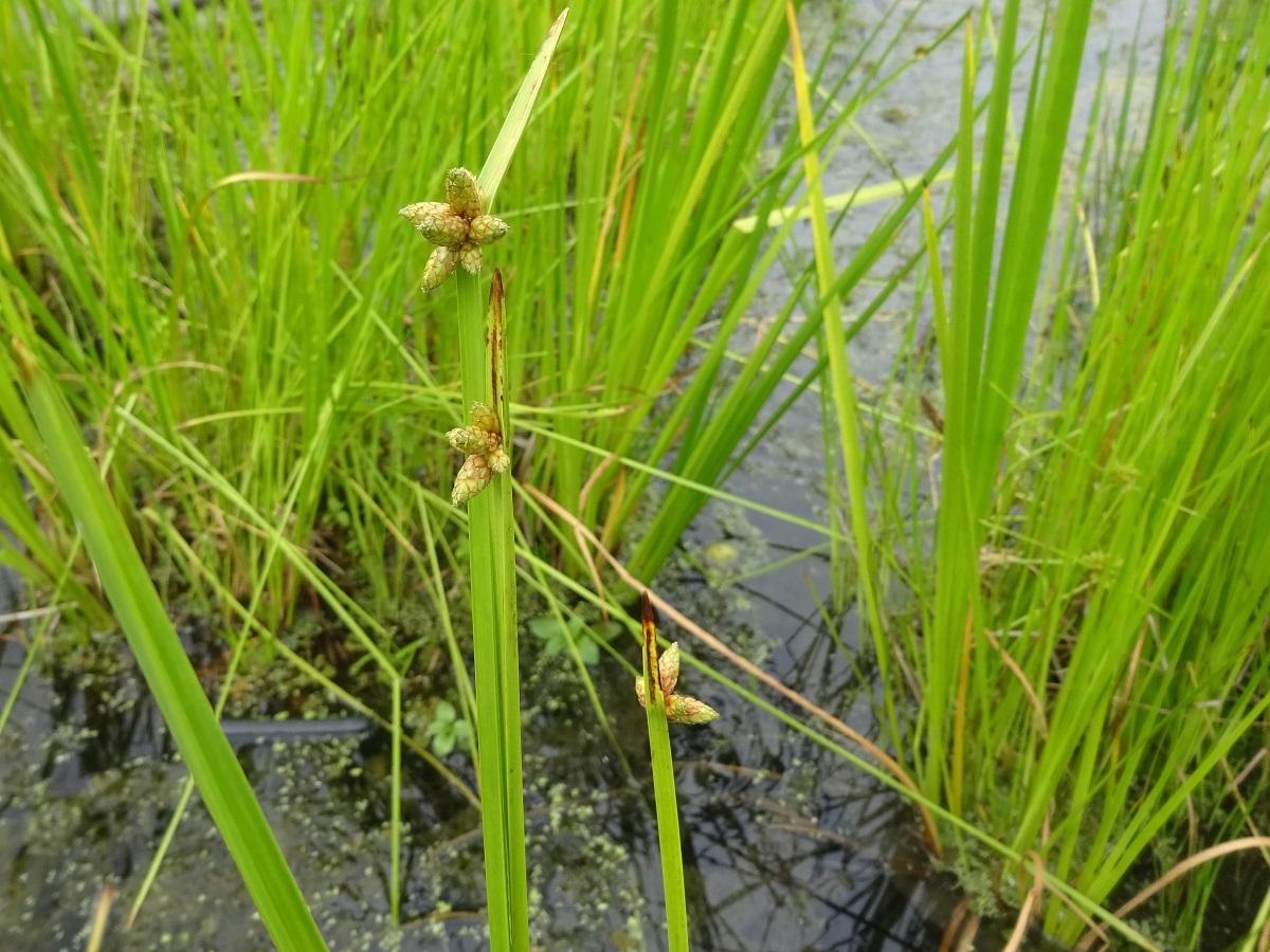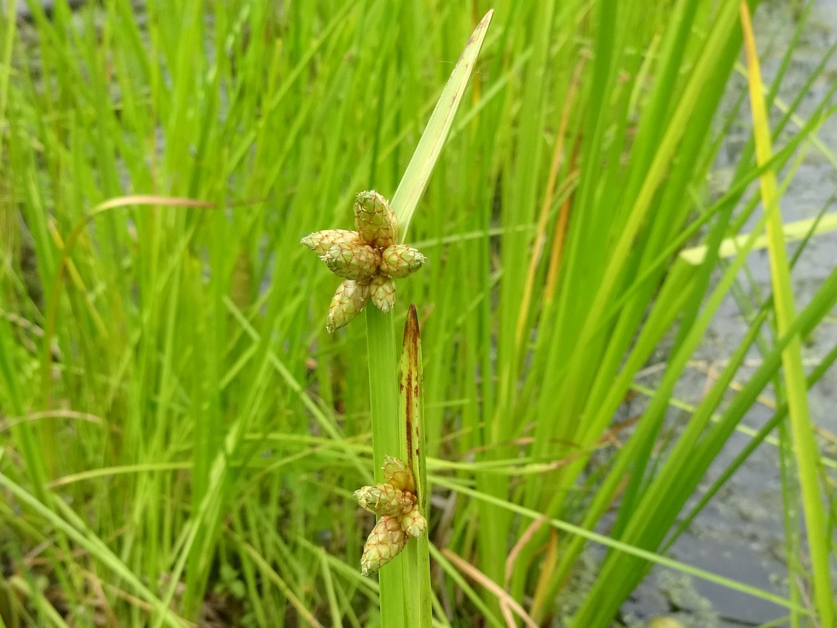 Th/Hc – 3-8 dm – Tige épaisse triquètre, dressée – Épillets ovoïdes en glomérule sessile, à bractée déjetée, écailles glabres, 3 stigmates – Akènes réticulés, à 6 soies
