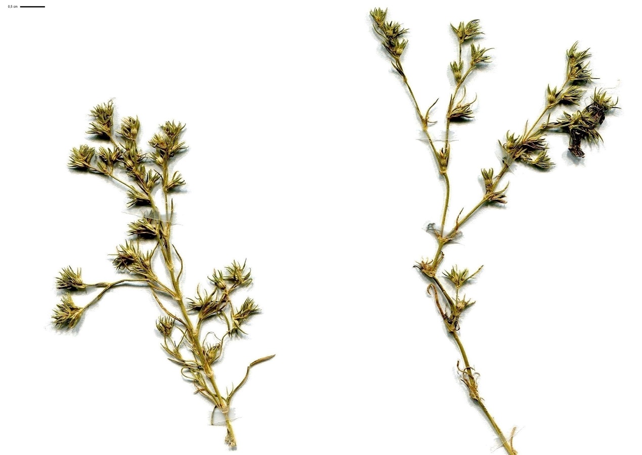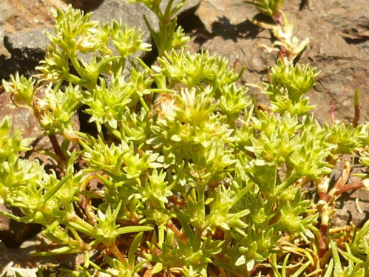 Th – 1-2,5 dm – Port prostré, feuilles opposées en alêne – Fleurs sans pétales en glomérules pédonculés ± lâches, à sépales verts nettement recourbés en crochet
