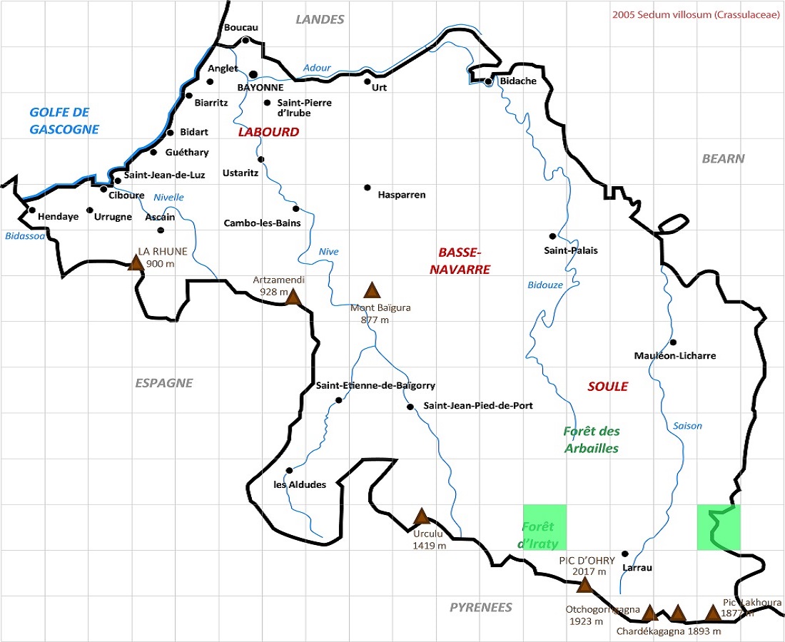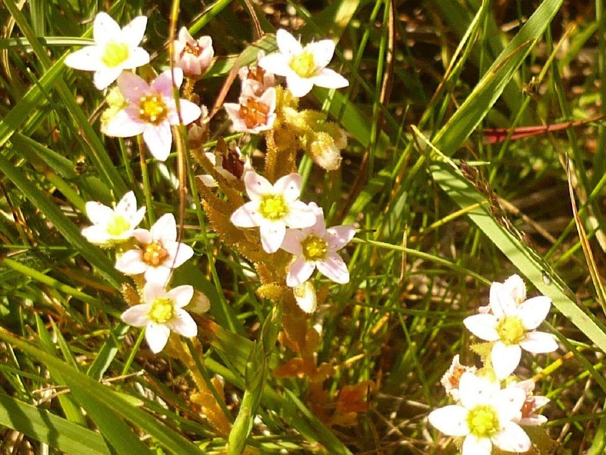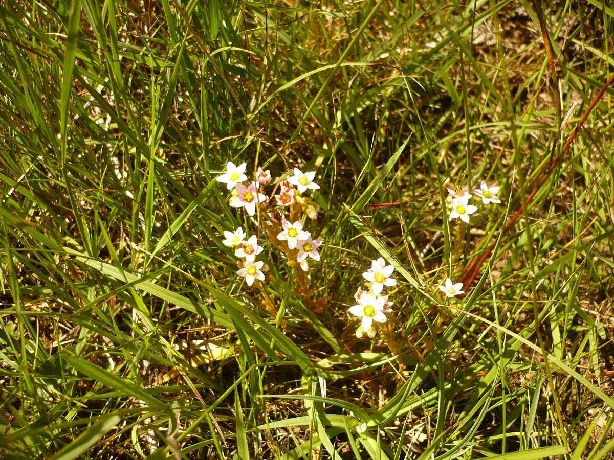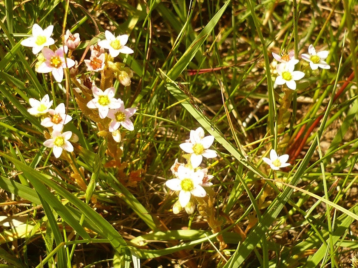 Th/Hc succulent – 1-2 dm – Plante glanduleuse, feuilles charnues alternes semi-cylindriques – Fleurs à 5 pétales blanc rosé ovales-aigus, 10 étamines – Carpelles ovoïdes acuminés
