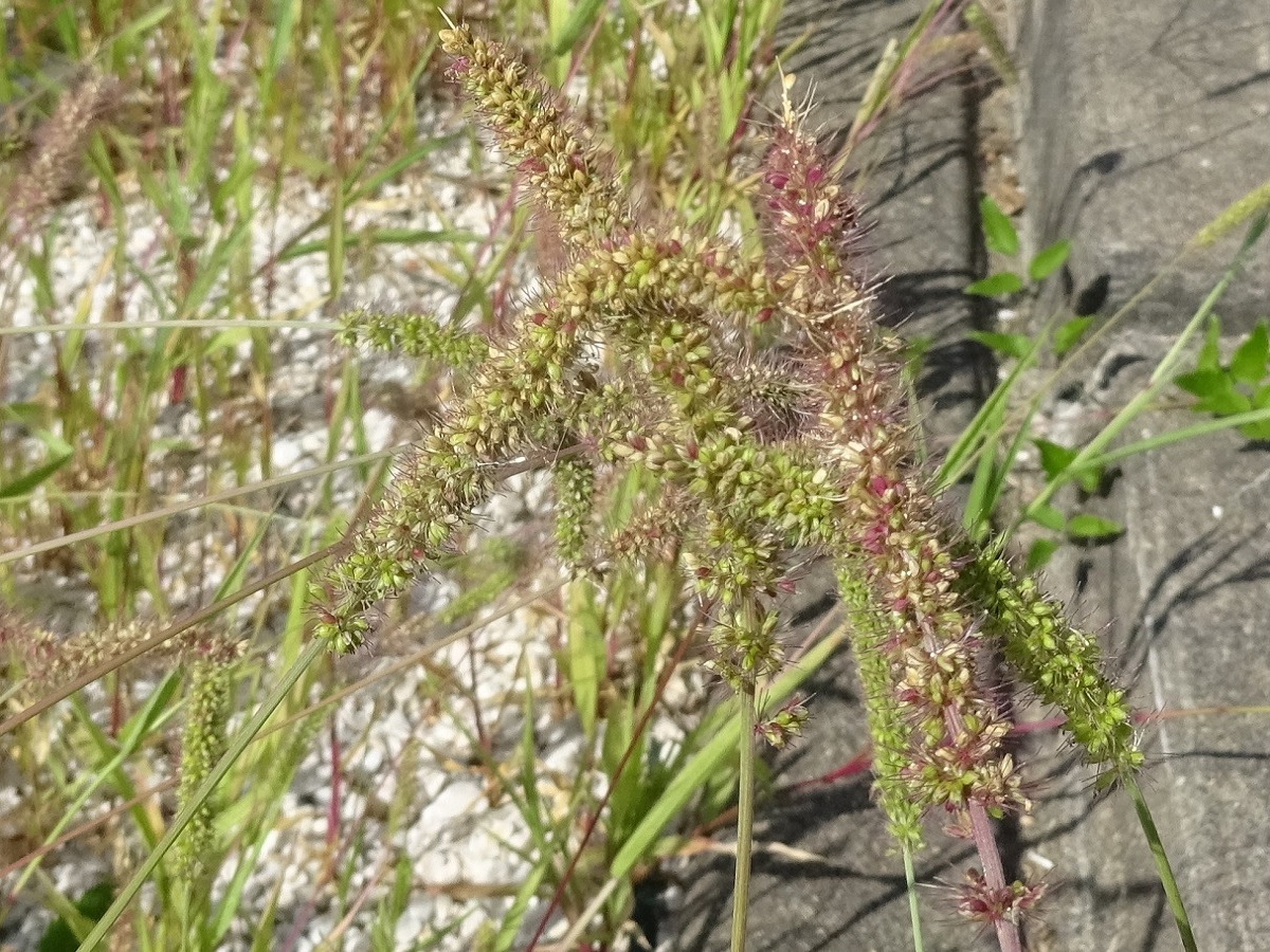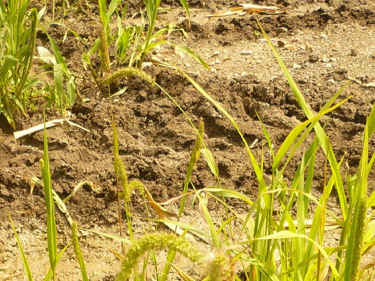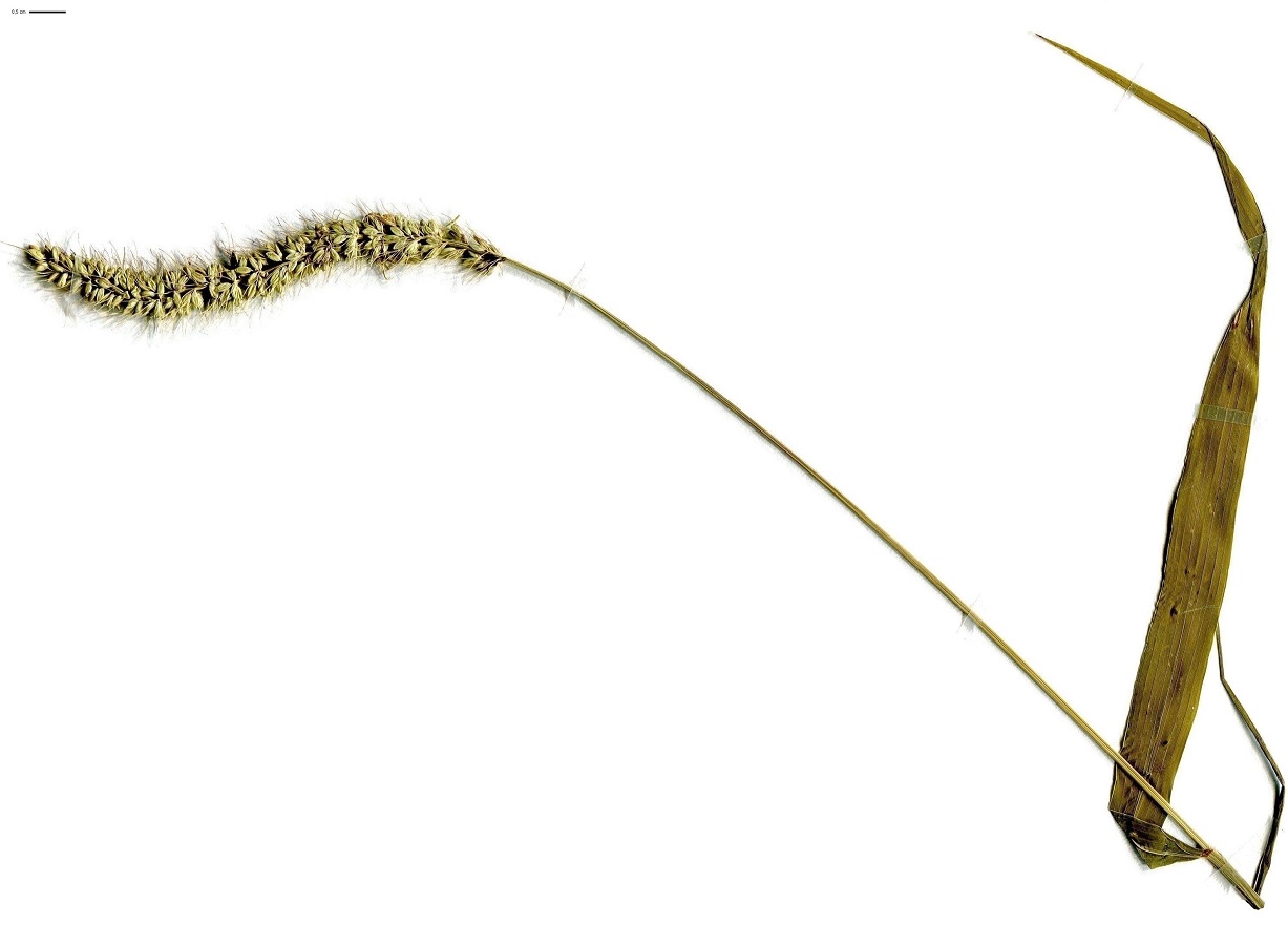Th – 4-8 dm – Feuilles assez larges, ligule ciliée – Inflorescence cylindrique à base ± interrompue, axe scabre, soies des épillets vertes, à aiguillons rétrorses très accrochants