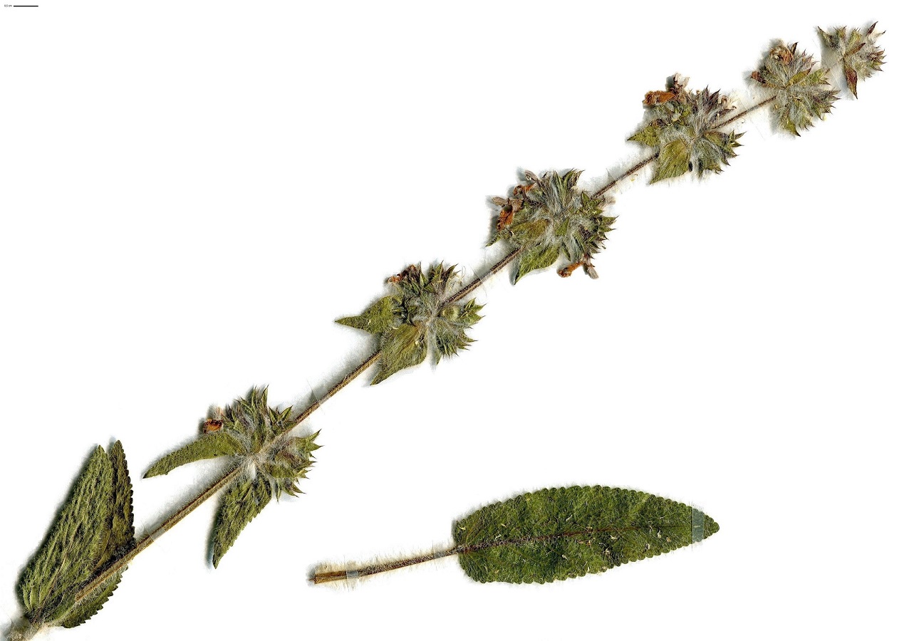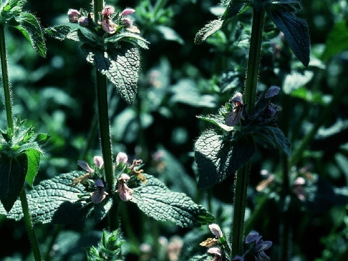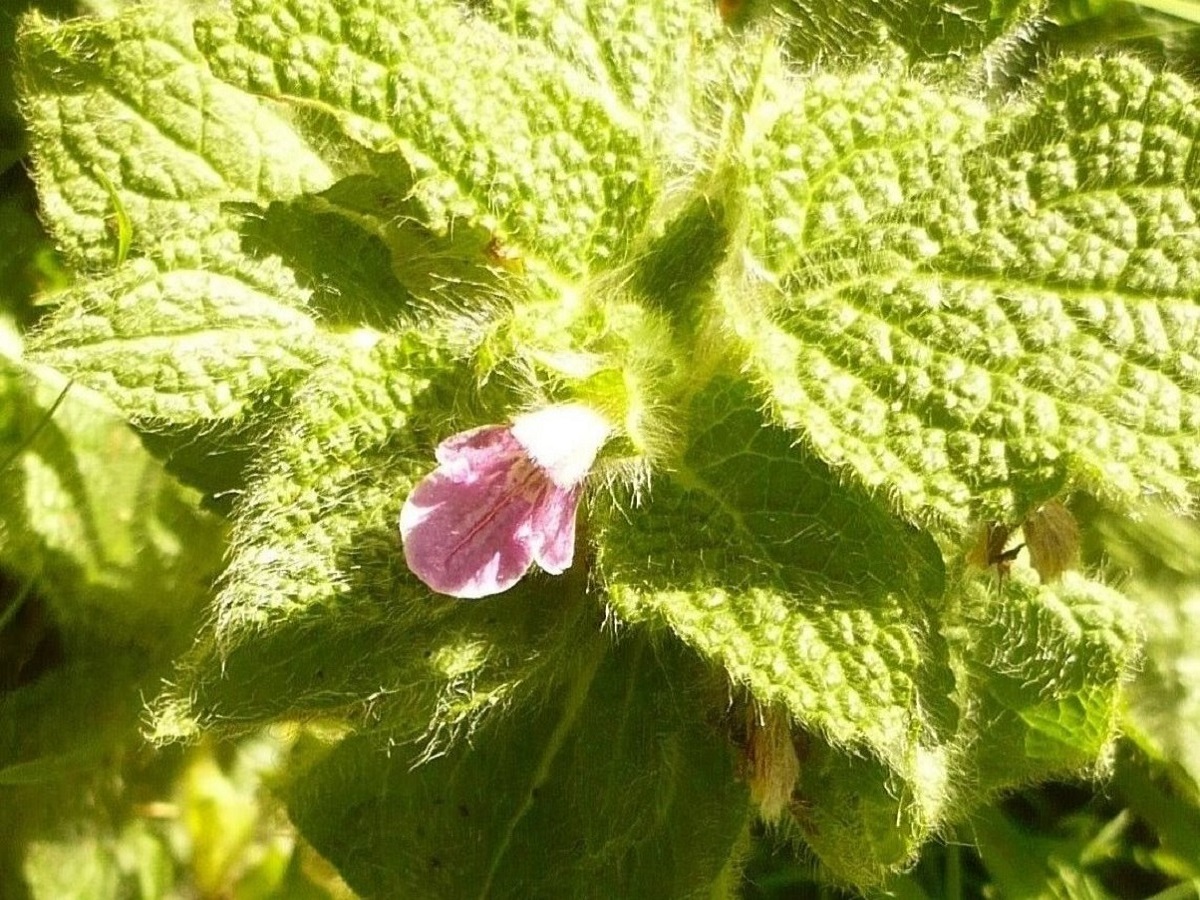 Hc – 2-5 dm – Feuilles ridées hirsutes de L 3-9 cm lancéolées tronquées, obtuses crénelées, pétiolées – Verticillastres écartés, corolle bilabiée rose L de 1,5-2 cm, lèvre > velue