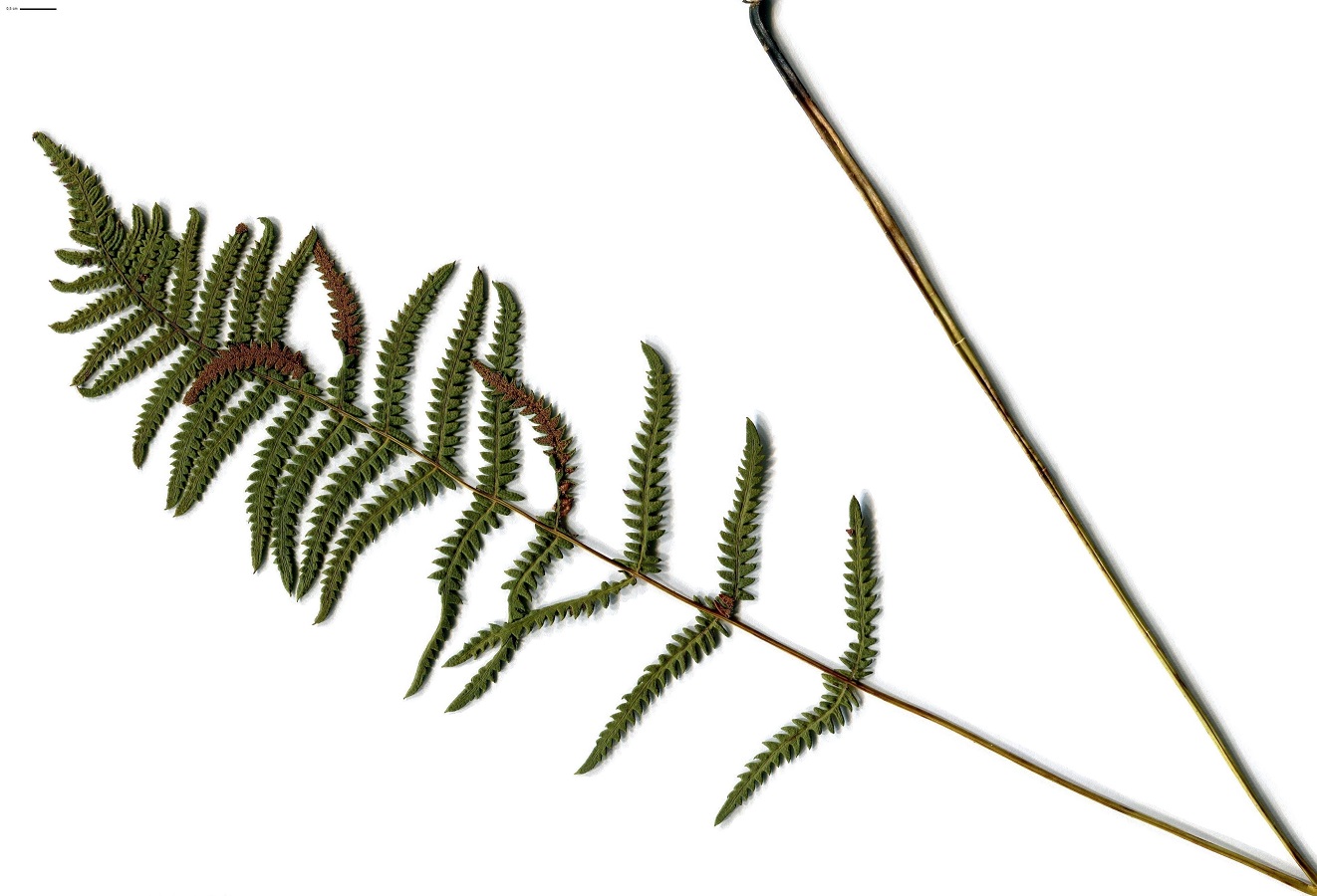 G à rhizome – 4-8 dm – Fougère à limbe à peine réduit à la base, divisé en pennes allongées étroites, espacées à la base, à long pétiole – Sores ronds bruns → confluents