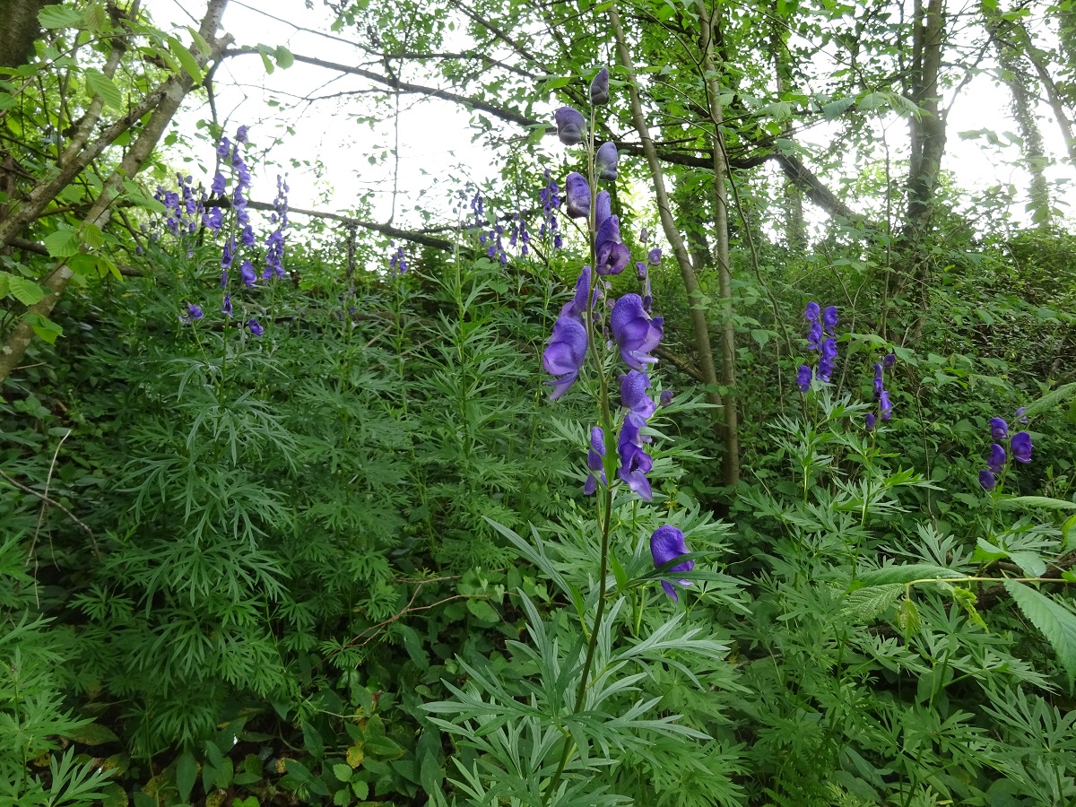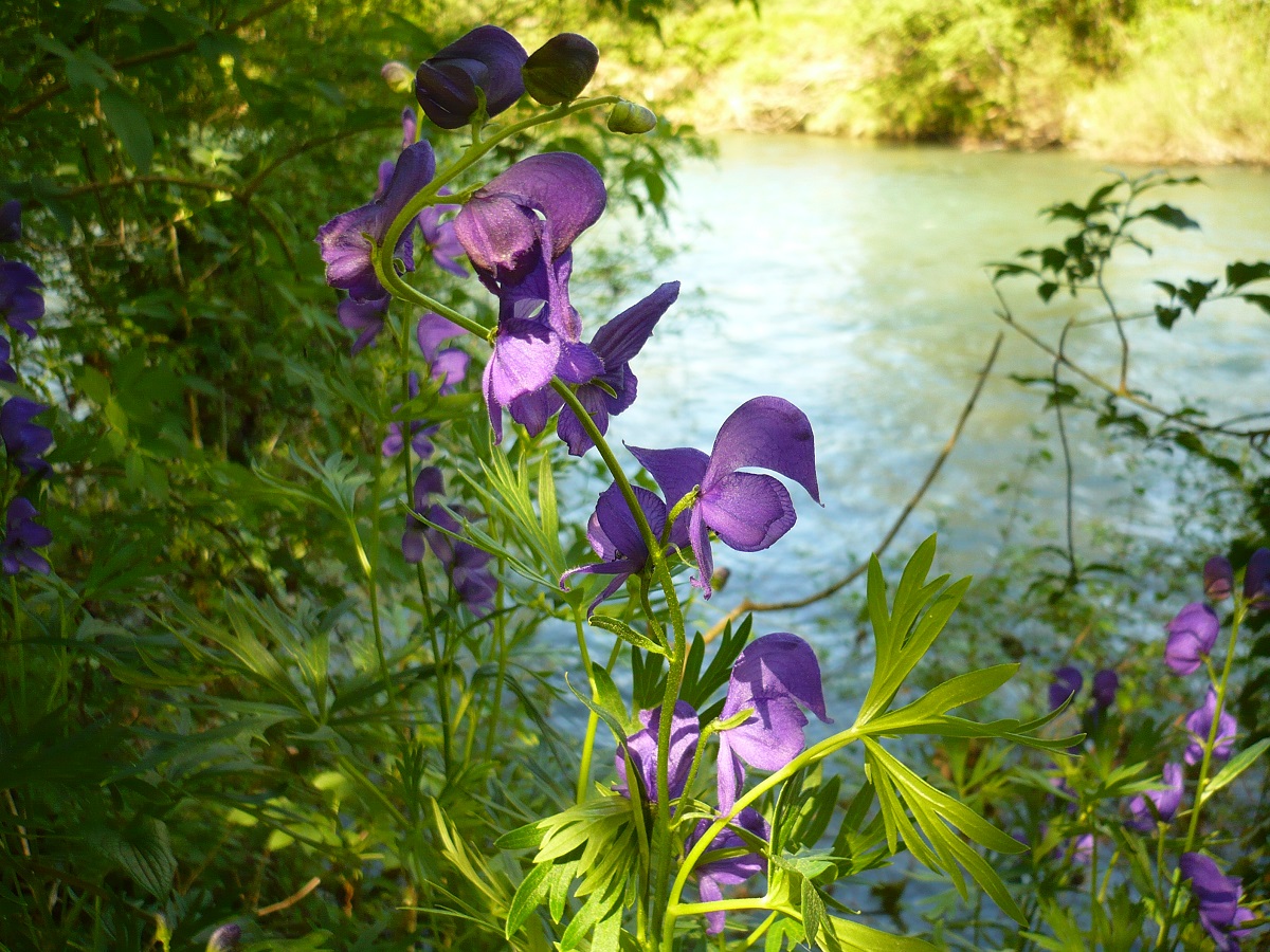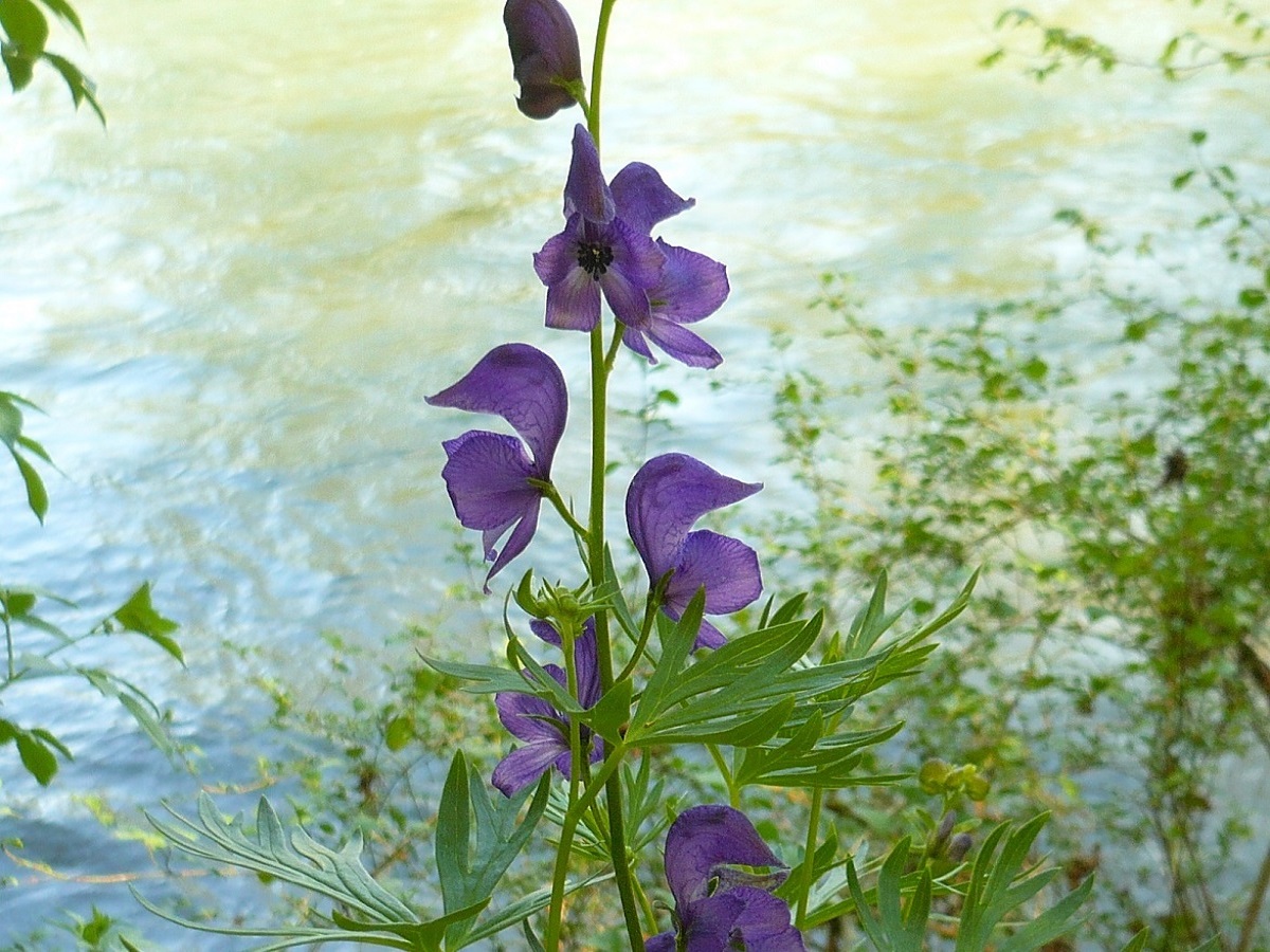 G à tubercule – 5-15 dm – Feuilles basales divisées 5 fois jusqu’au pétiole en lobes étroits, incisés-lancéolés – Grappe lâche de grandes fleurs bleu-violet à casque aussi large que long