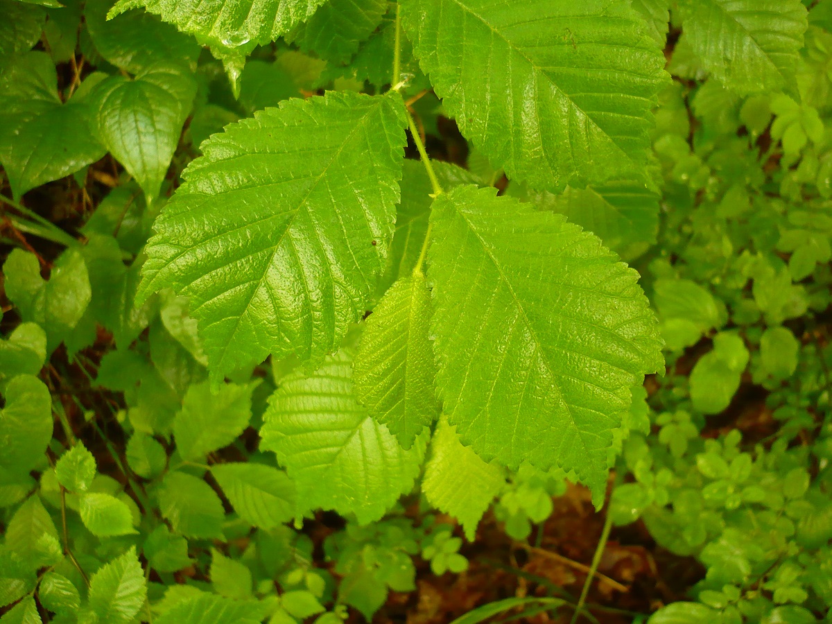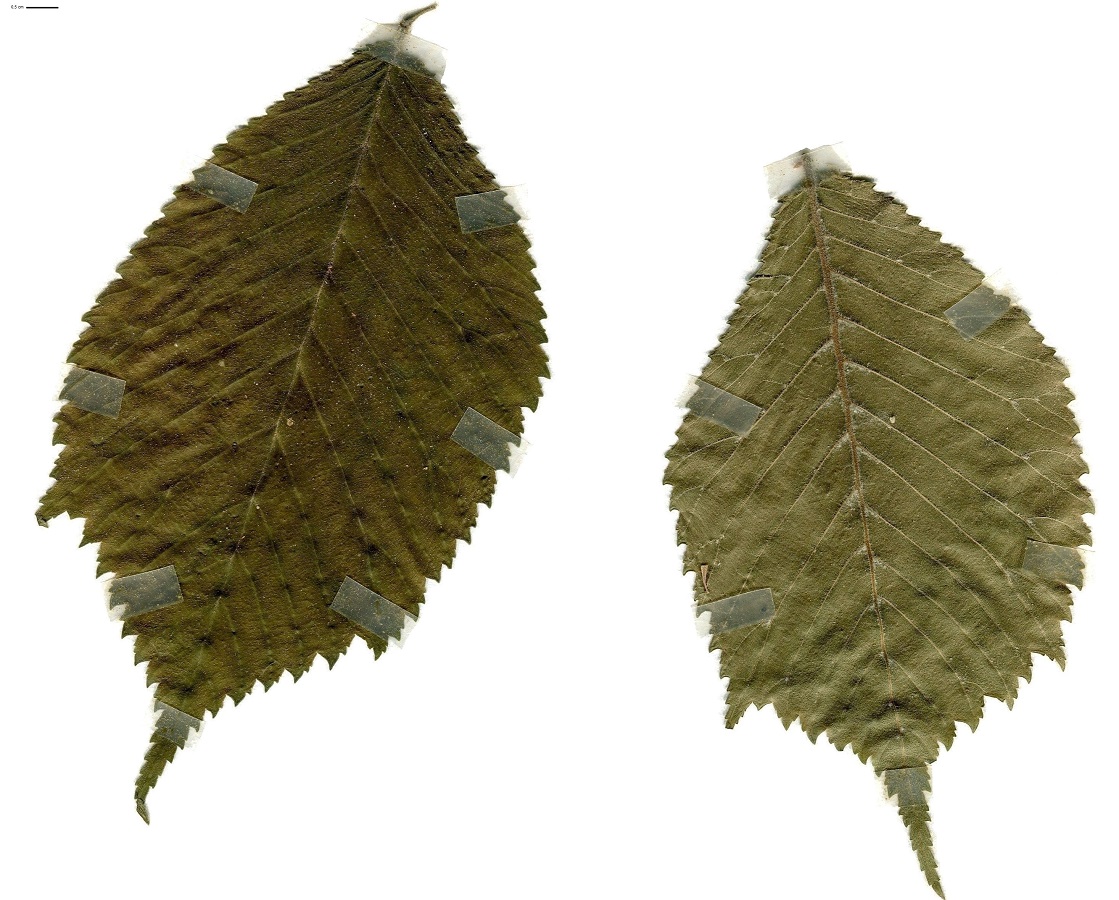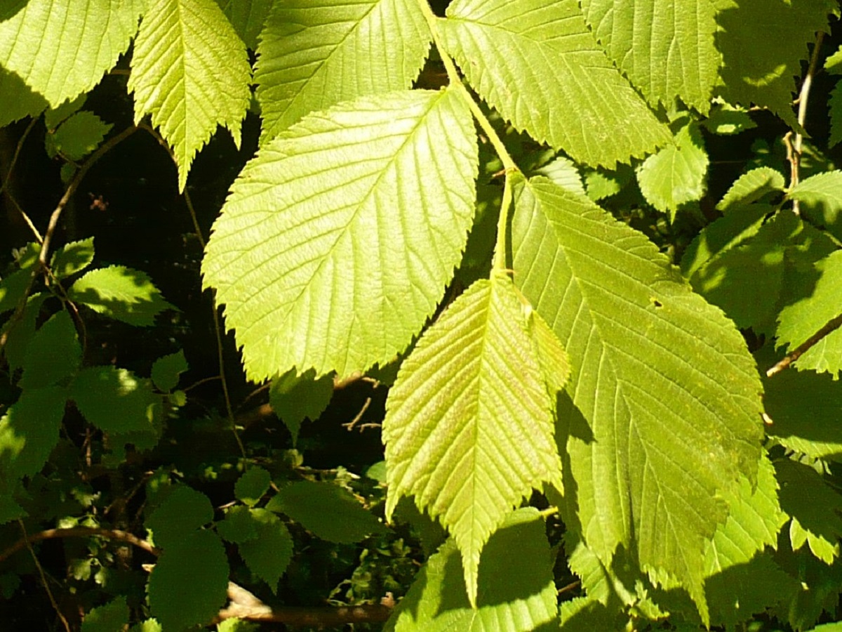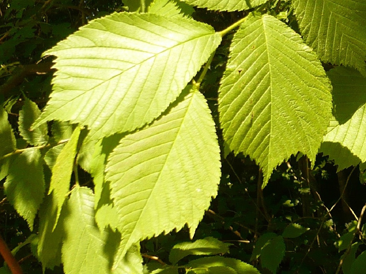 Ph – 10-40 m – Feuilles grandes ovales acuminées, grossièrement dentées, ± à 2 pointes latérales, scabres – Fleurs rougeâtres et samares grandes, à graine centrale, sessiles
