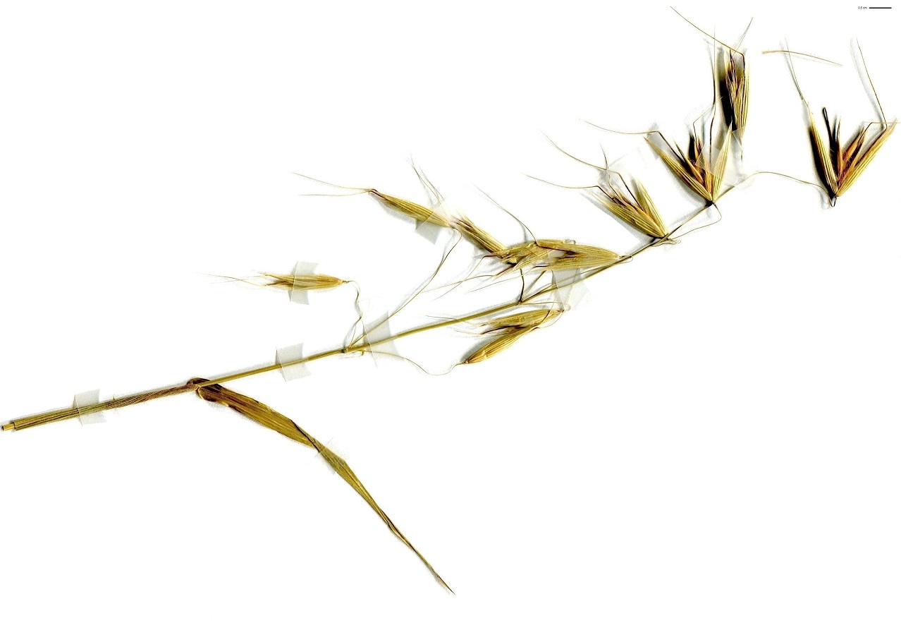 Th – 8-15 dm – Feuilles larges planes, ligule courte, tronquée – Grands épillets pédicellés, lemme à pointe bifide courte, velue à poils bruns, à longues arêtes coudées