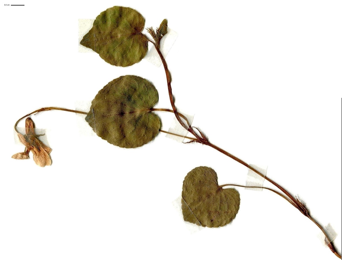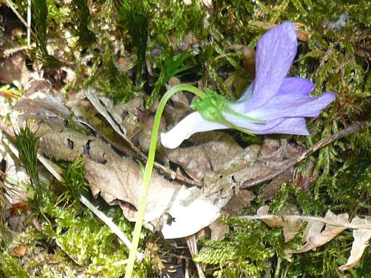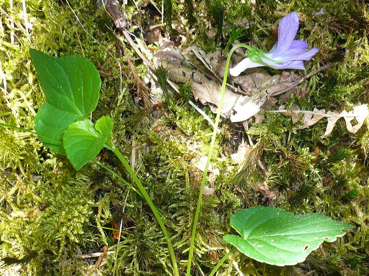 Hc – 1-3 dm – Feuilles de la rosette basale et caulinaires arrondies en coeur, crénelées, stipules fimbriées – Fleurs violettes assez grandes à long éperon + clair, recourbé, sillonné