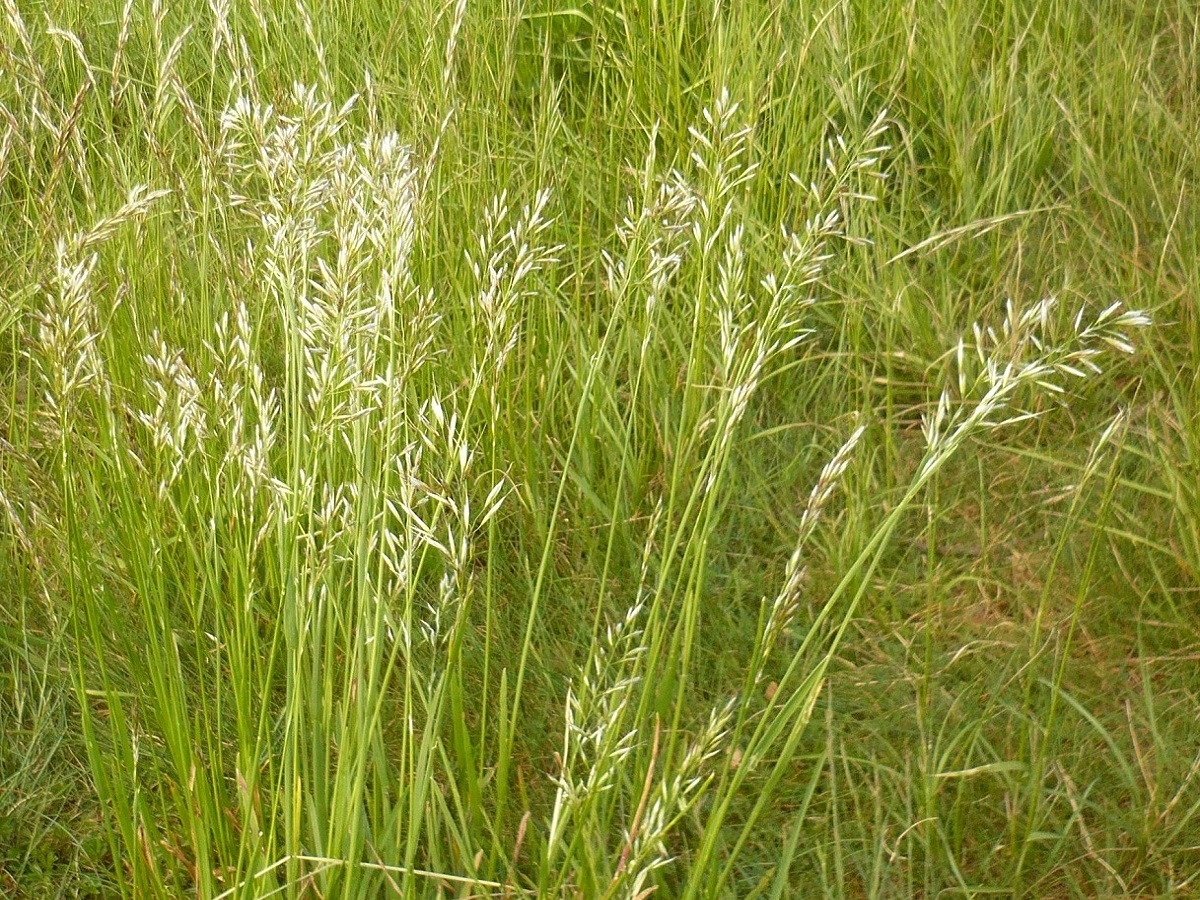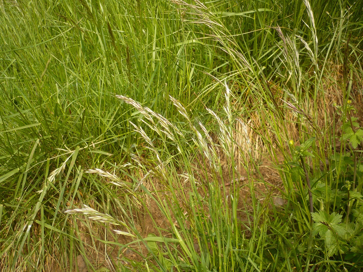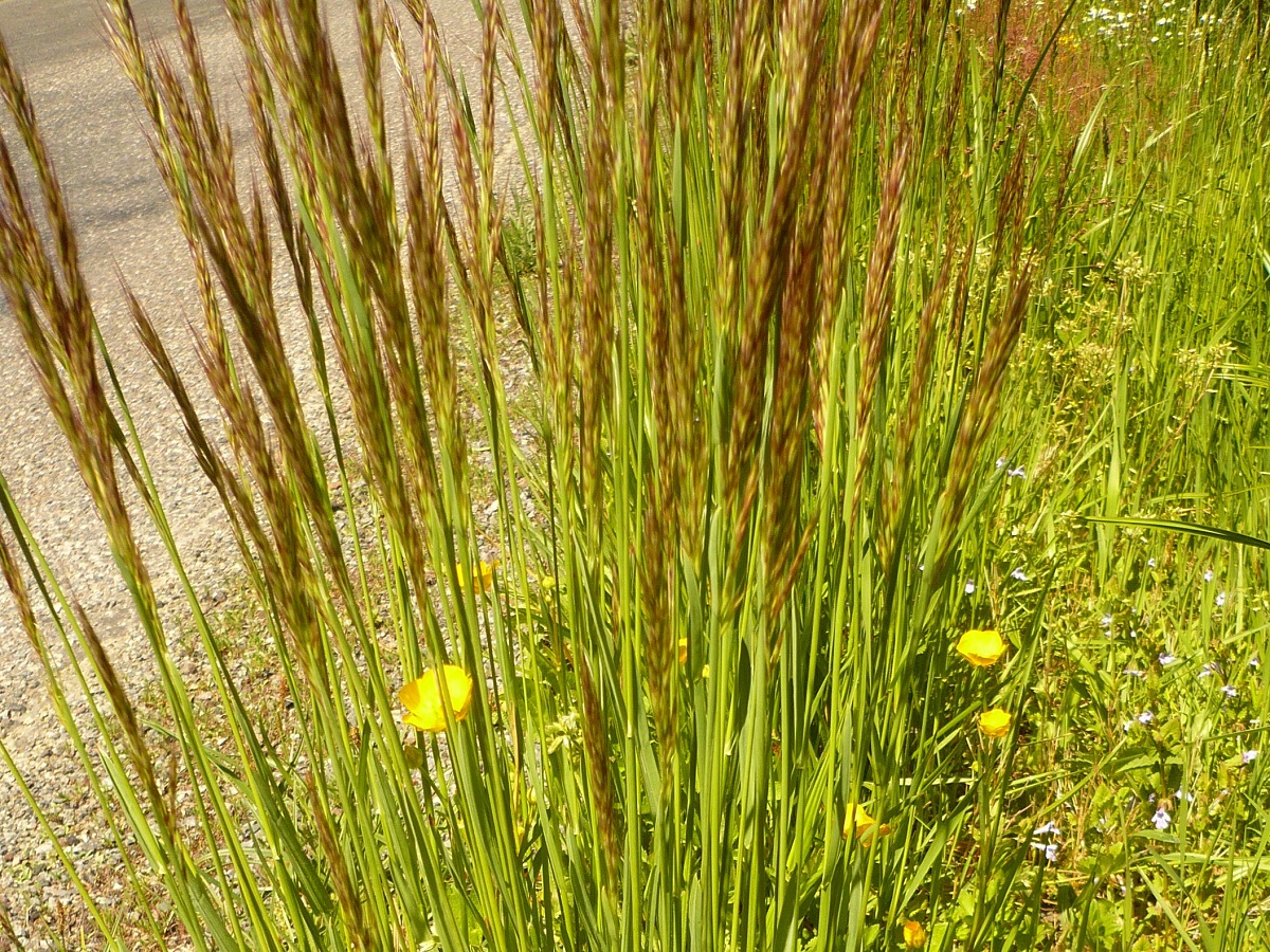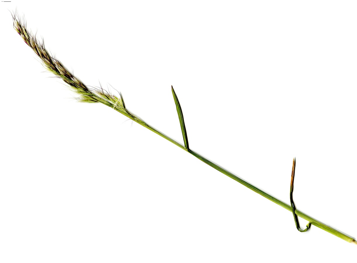 Hc – 4-8 dm – Feuilles, ± planes molles, et gaines velues, surtout à la base – Inflorescence oblongue argentée à violacée, épillets assez longs, arête cylindrique genouillée