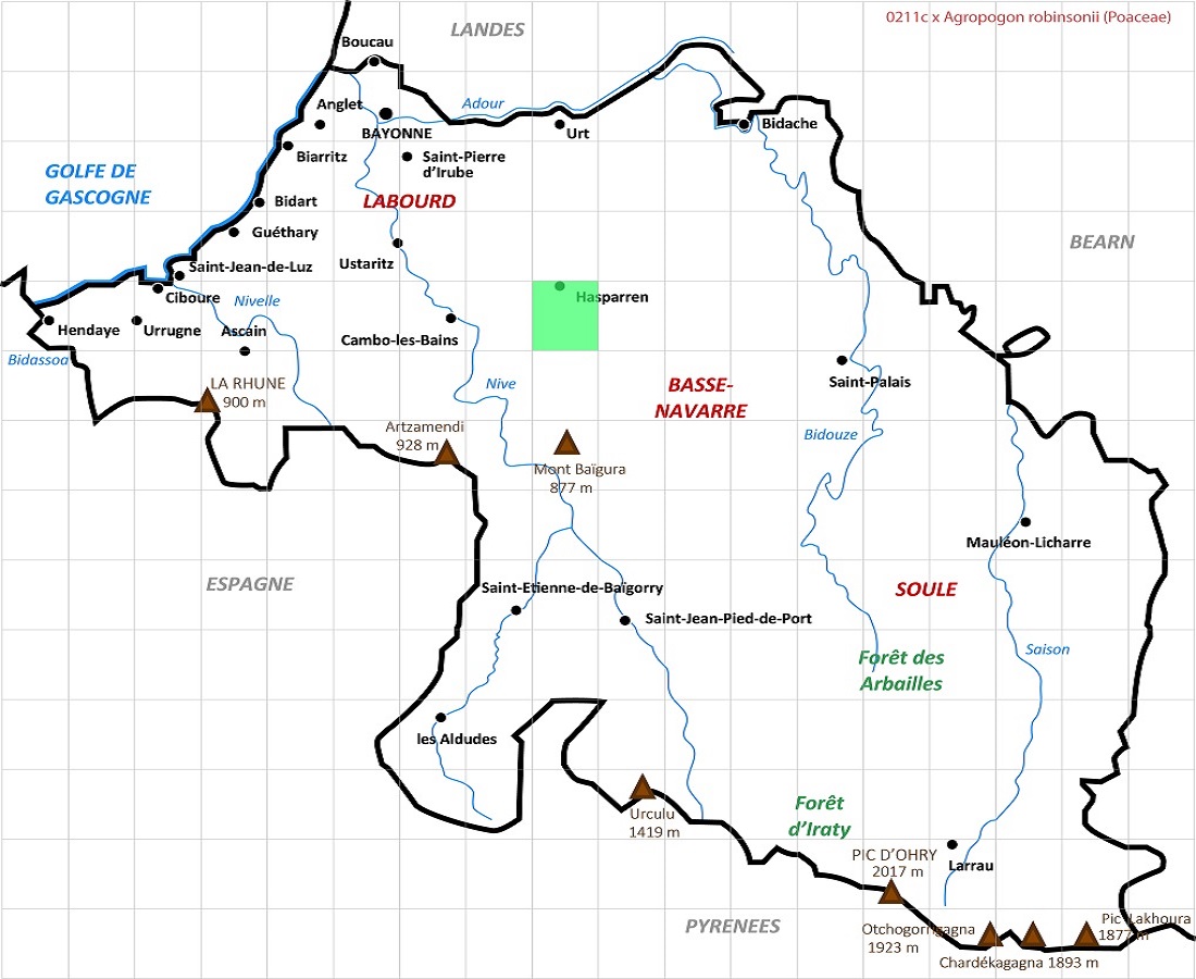 Nom Latin du taxon (Famille) x Agropogon robinsonii (Poaceae) - Synonymes Latins – (Syn. Agrostis stolonifera x Polypogon viridis) Nom Français du taxon Agropogon de Robinson - Autres Noms Français - nc Nom en Euskara nc - Autres Noms en Euskara - nc Identifiant 0211c