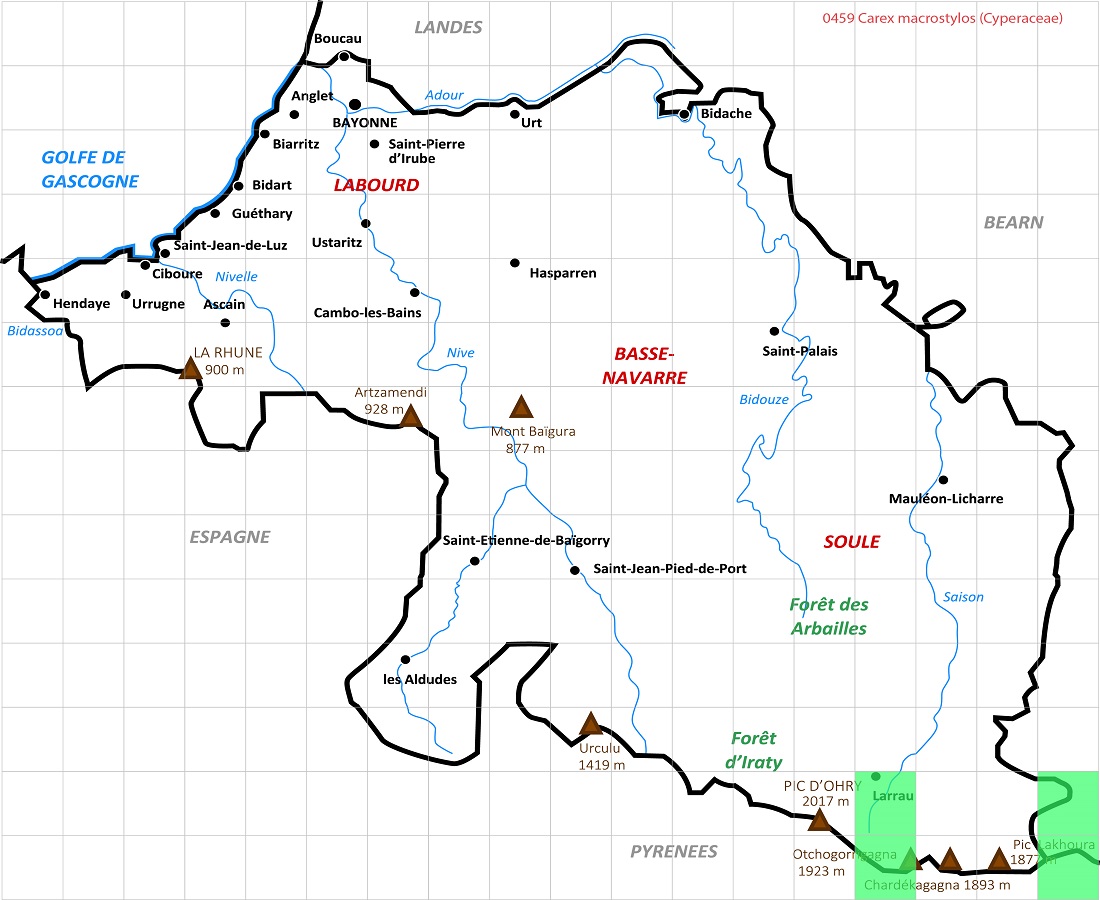Hc – 1-2 dm – Feuilles > 1 mm de large – 1 Épi de fleurs ♂ à l’apex, 8-15 fleurs ♀ à 2 stigmates à la base – Utricules de L 5-6 mm roux mats, étalés, oblongs à long bec