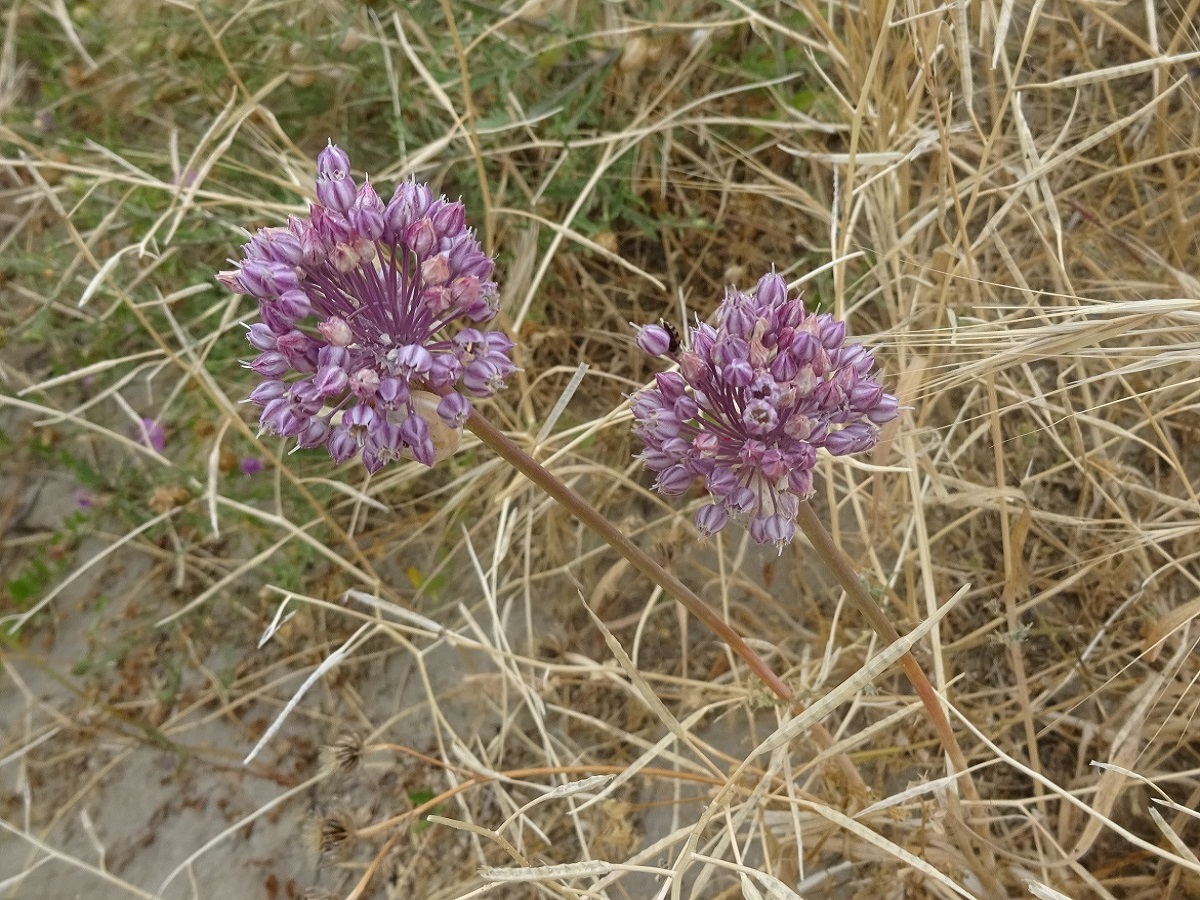G à bulbe – 4-8 dm – Tige ± épaisse dressée, feuilles linéaires planes lisses, odeur de poireau – Ombelle sphérique de fleurs rose sale pédicellées, étamines peu saillantes, spathe caduque